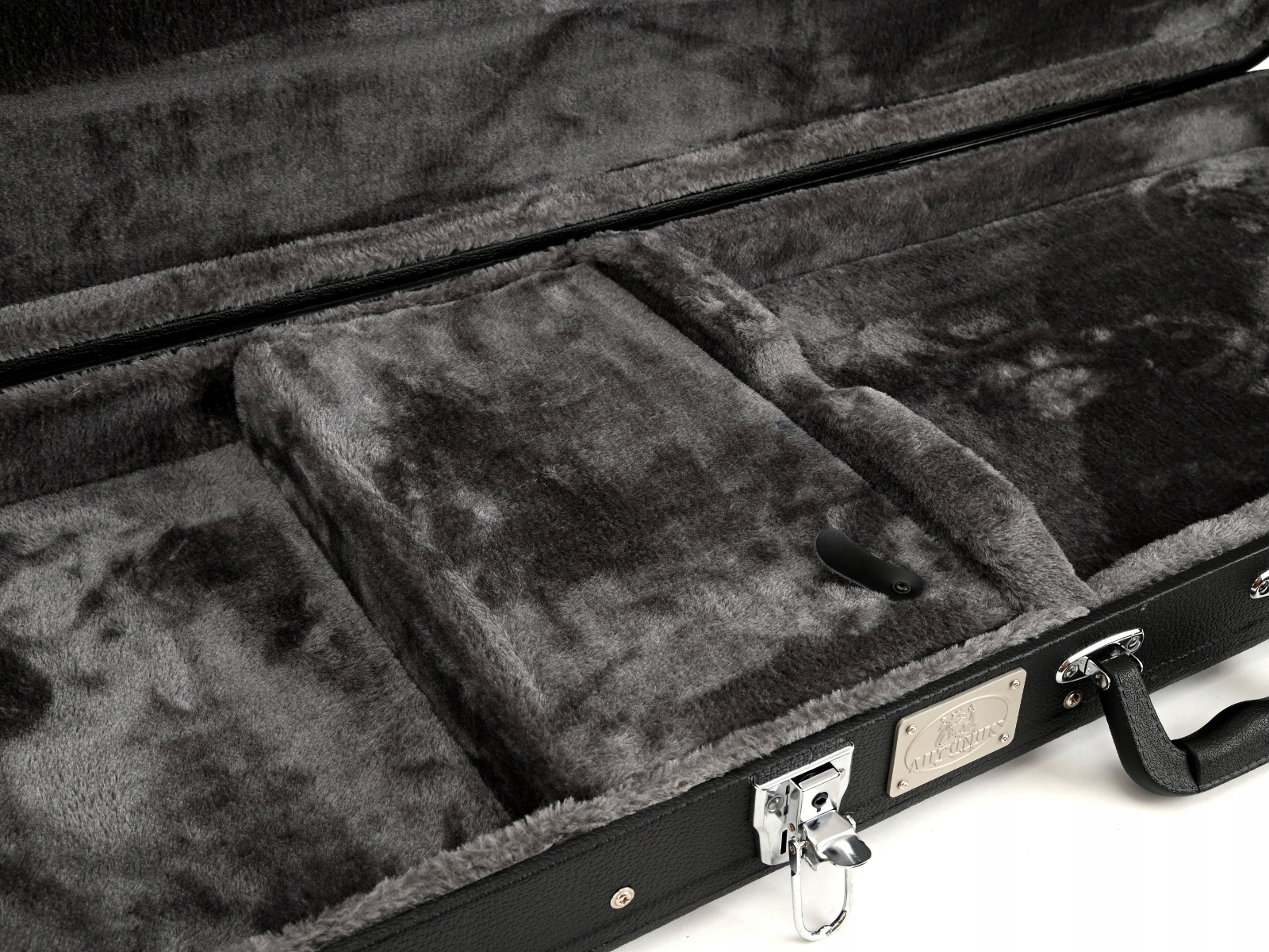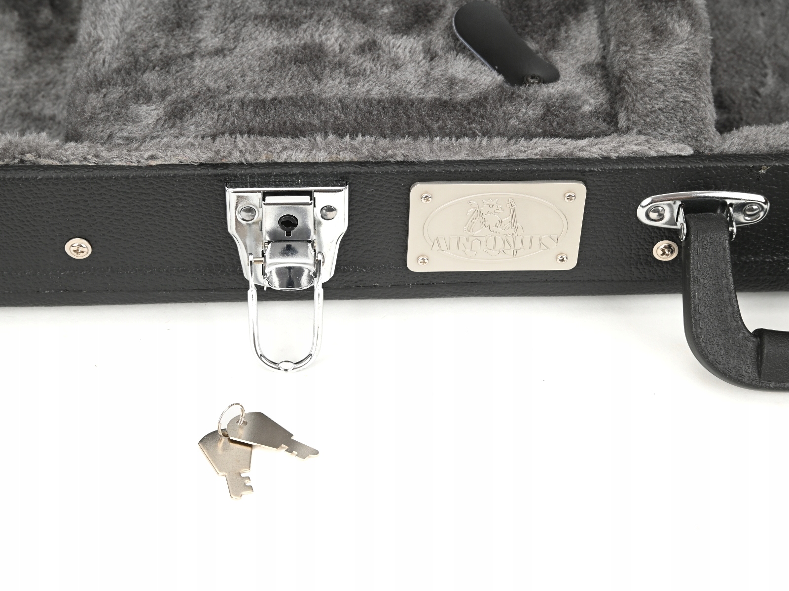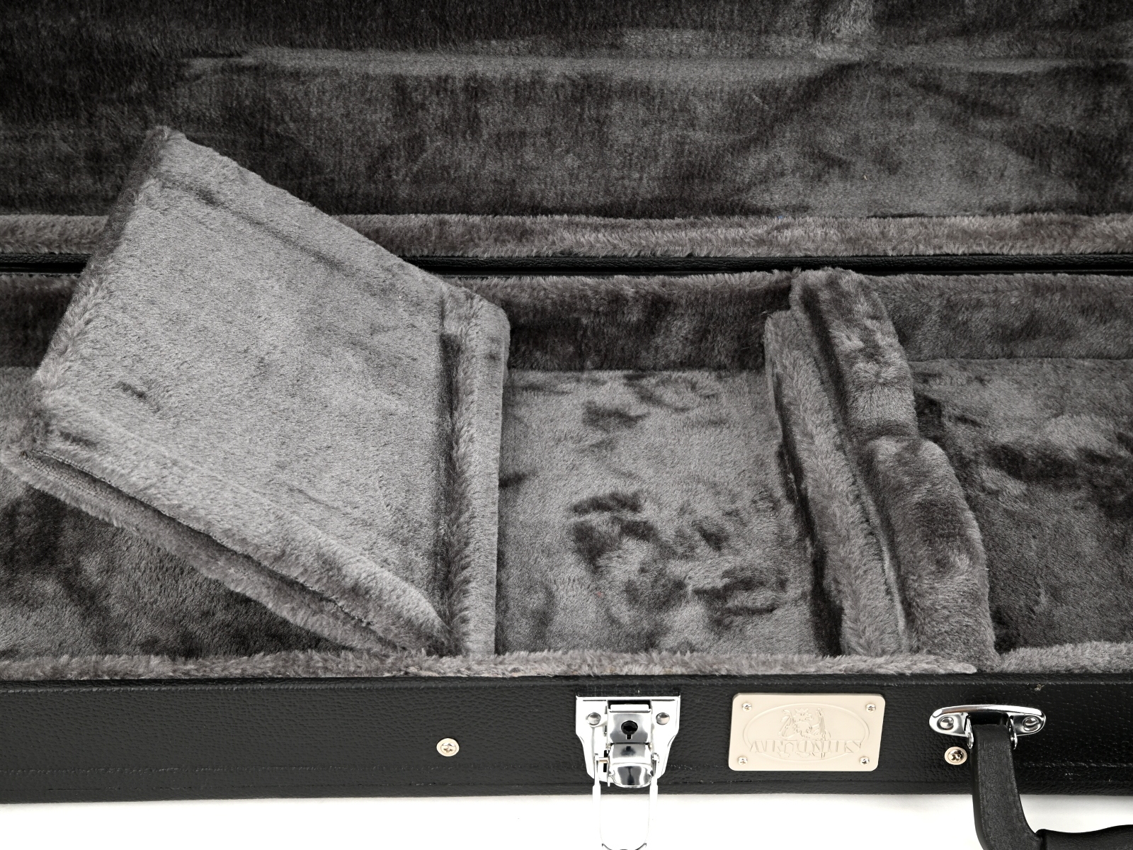 Кейс изготовлен из деревянной фанеры, снаружи обтянут тканью под кожу. Внутри имеется один отсек для аксессуаров. Внутри подкладка из губки и плюша. Ориентировочный вес 5,1 кг. Кейс для гитары оснащен пластиковой ручкой и тремя замками, один из которых ключевой. На данный момент доступна одна цветная версия. Сделано в Китае.