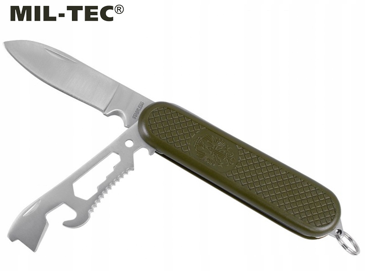 - многофункциональный карманный нож, в состав которого входят : нож, консервный нож и консервы, плоская отвертка, пила по дереву и пластику, накидной ключ (4 размера) и кольцо для темляка