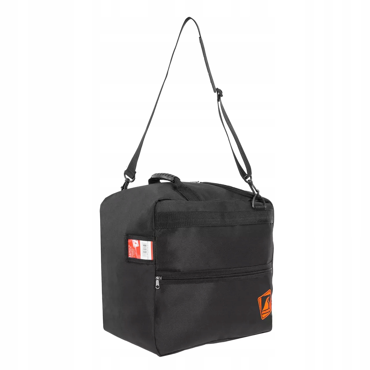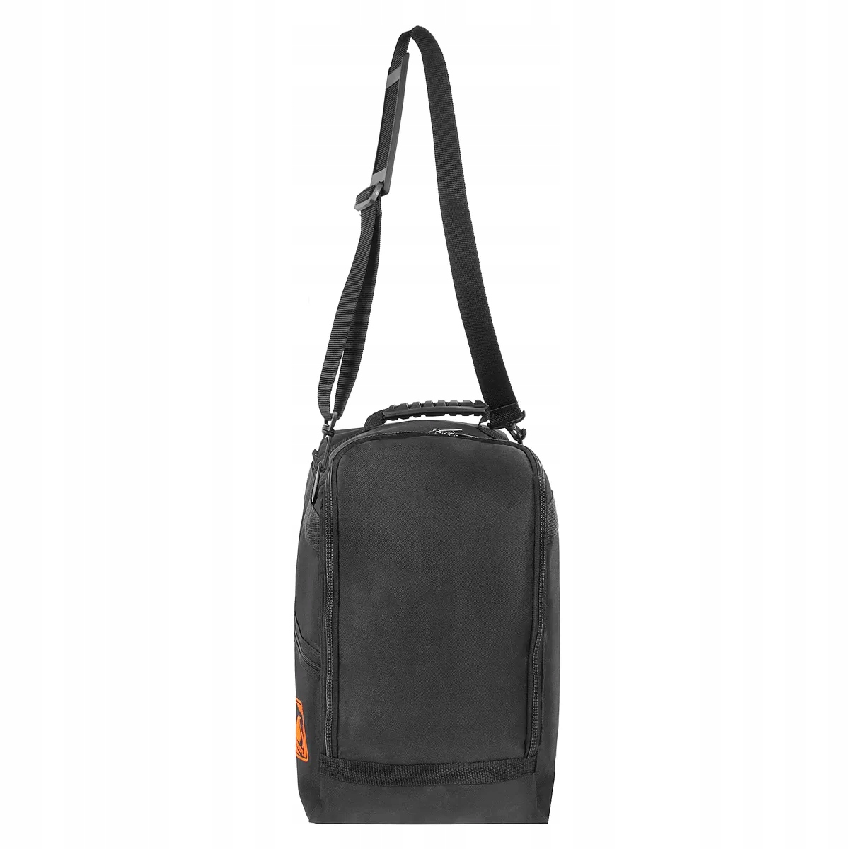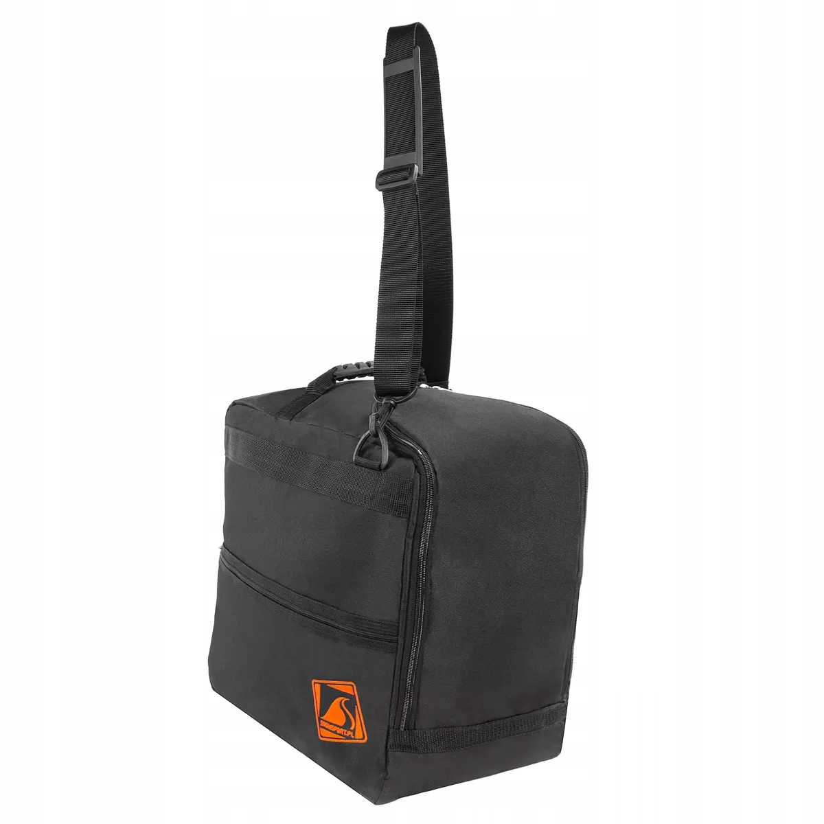 Сумка оснащена удобной, регулируемой «плечевой» стержней и резиновой ручкой для перевозки его в руке. Он имеет дополнительный внешний карман, в котором вы можете установить другие, различные, меньшие аксессуары для наклона, такие как липучка, перчатки, Бандана и т. Д.