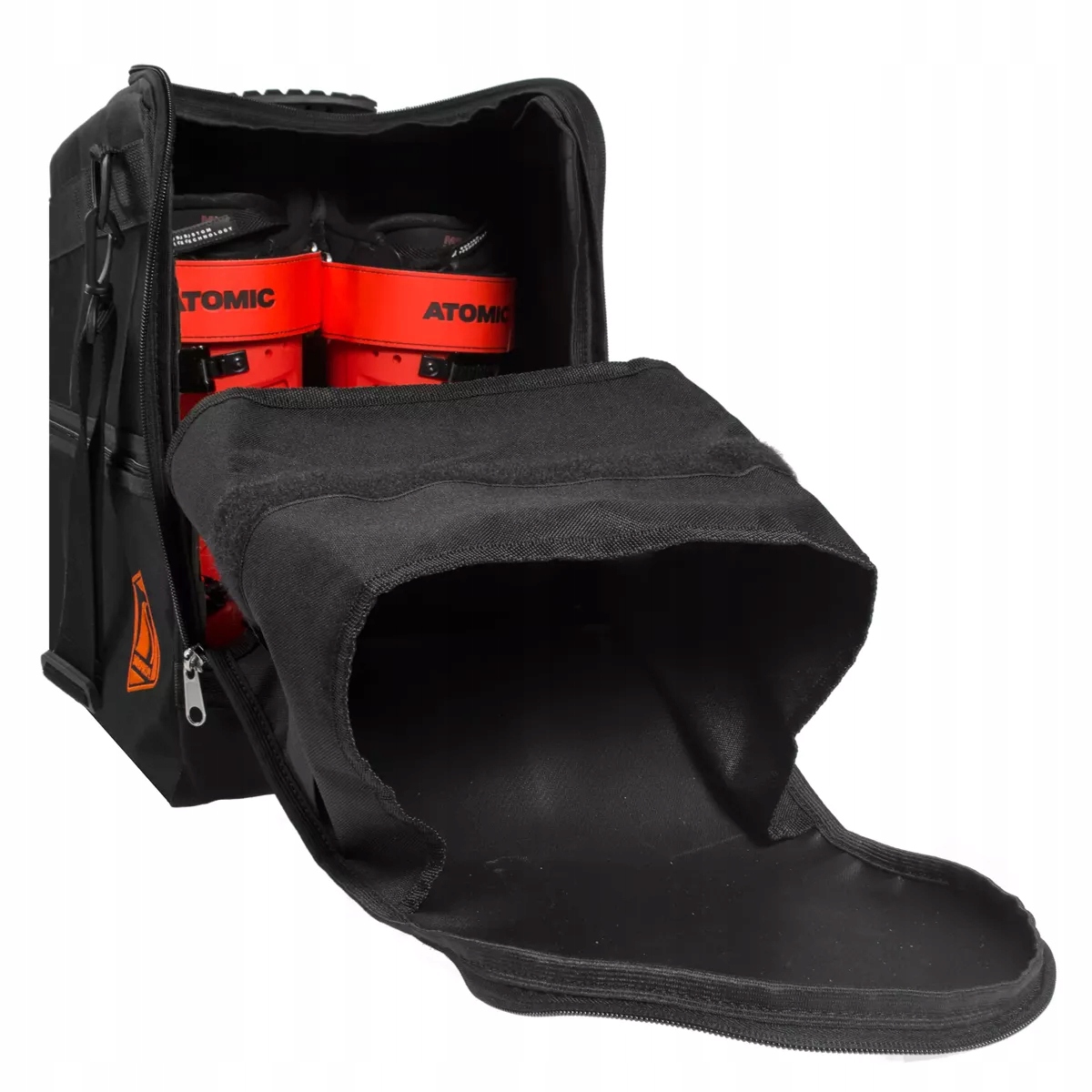 просторная крышка, которая предоставляет место для упаковки лыж/снега, шлема и других зимних аксессуаров. Обувь и шлем отделены друг от друга, так что они не втирают друг друга во время транспортировки.
