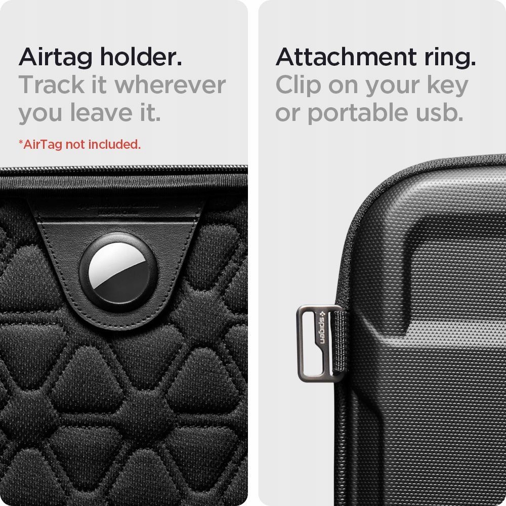 Кейс оснащен эластичными ремнями, которые защитят ноутбук даже во время использования, а специальная защелка для Apple Airtag позволит спрятать гаджет в надежном месте.