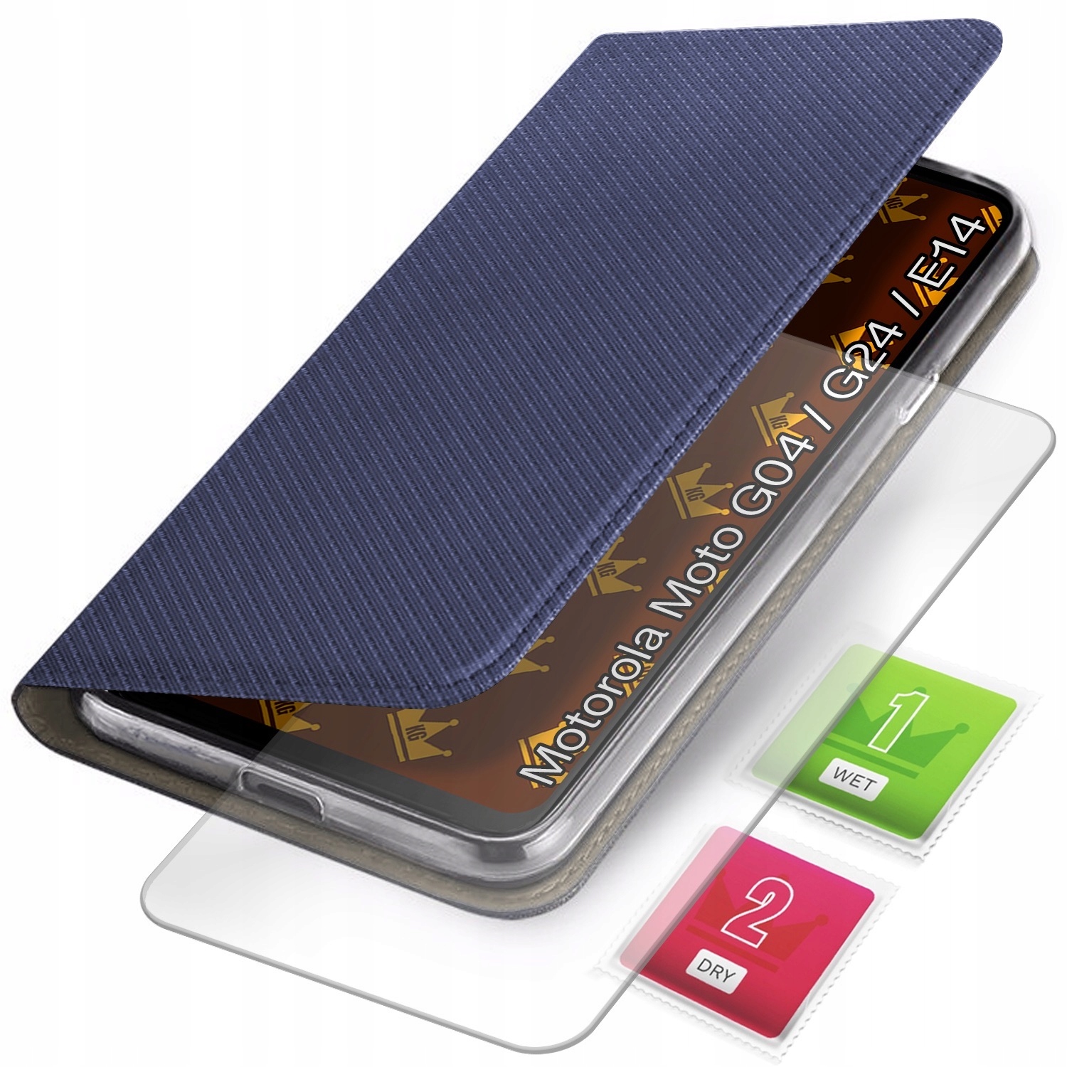 ЧЕХОЛ С НАПОЛЬНЫМ ДЛЯ MOTOROLA MOTO G04/G24/E14 ТЕМНО-СИНИЙ МАГНИТНЫЙ + СТЕКЛО