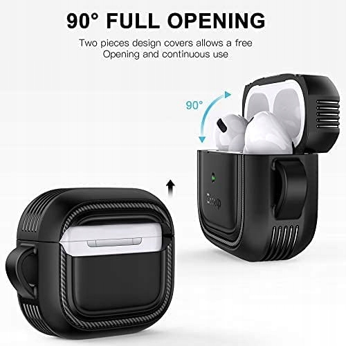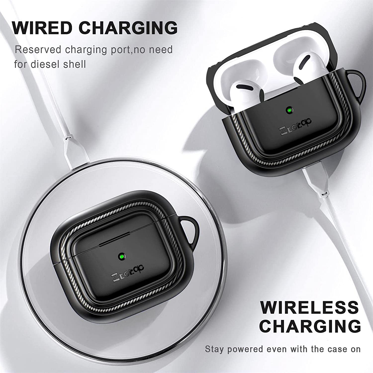 Чехол ZtotopCases AirPods 3 2021, защитный чехол в стиле милитари с карабином, видимый светодиод спереди, поддержка беспроводной зарядки для AirPods 3-го поколения, черный.