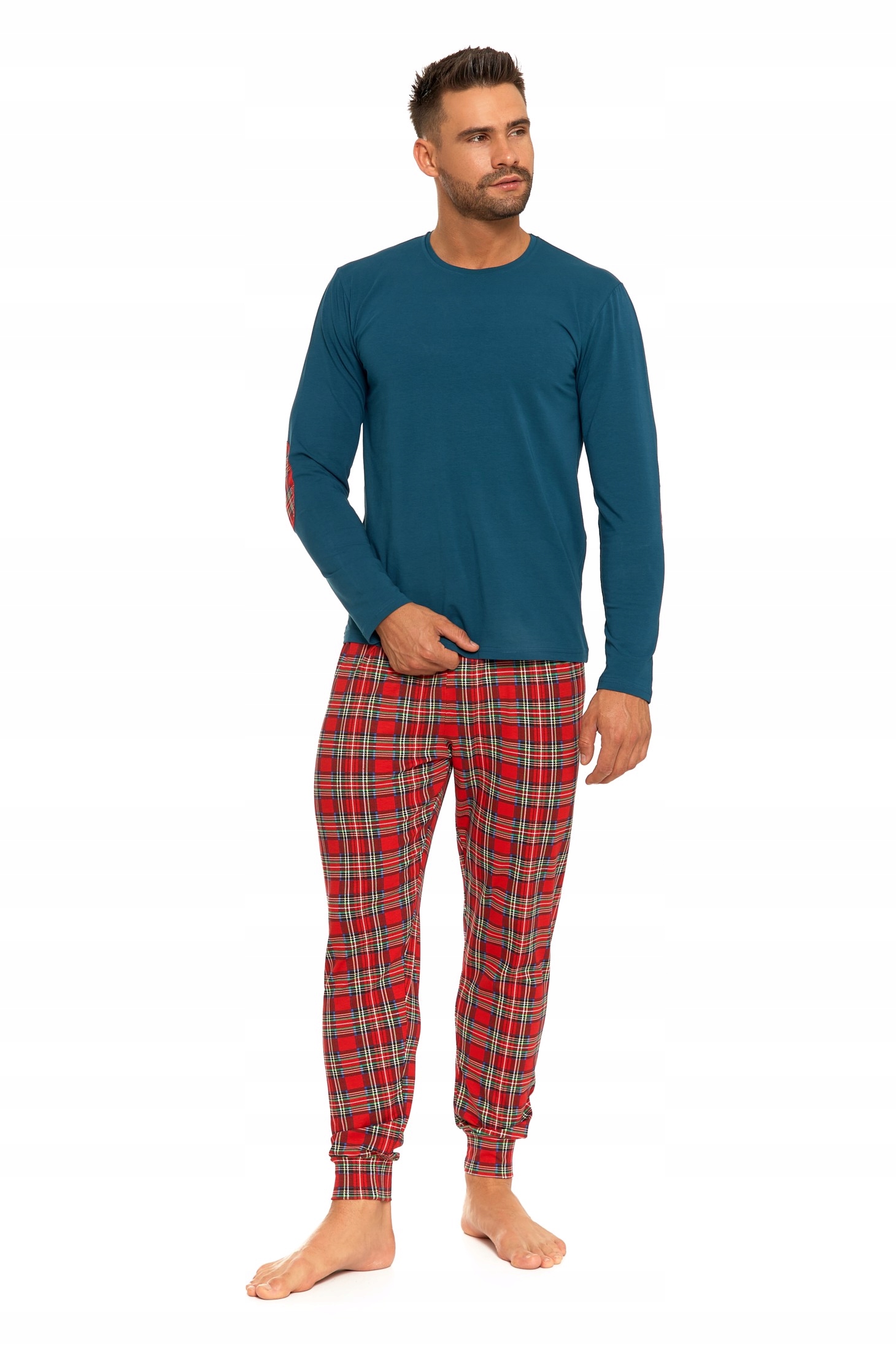 Рады представить новинку — мужскую пижаму с длинными рукавами и длинные брюки зеленого цвета с клетчатым мотивом на брюках. Эта исключительно удобная пижама создана для мужчин, которые ценят комфорт и стиль дома. Изготовленная из высококачественного хлопка, она гарантирует не только приятное ношение, но и долговечность в течение многих сезонов. Наш продукт – это сочетание современного дизайна и превосходного качества изготовления. Длинные рукава обеспечивают достаточное тепло в холодные дни, а длинные брюки обеспечивают защиту и комфорт ногам. Классический крой и точная отделка делают пижаму элегантной и привлекают внимание. Комфорт использования – одна из важнейших особенностей наших мужских пижам. Качественный хлопок воздушен, мягок и нежен к коже, обеспечивая полный комфорт во время сна и отдыха. Эластичная отделка рукавов гарантирует идеальную посадку по фигуре, не сковывая движений. Кроме того, длинные брюки с удобным ремнем позволяют пижаме идеально адаптироваться к индивидуальным предпочтениям и обеспечивают оптимальное ощущение свободы. В нашем магазине вы найдете пижамы разных размеров, чтобы вы могли подобрать идеальную для себя или близкого человека. Вне зависимости от сезона эта мужская пижама станет вашей любимой одеждой для отдыха, предлагая не только комфорт, но и неповторимый стиль.