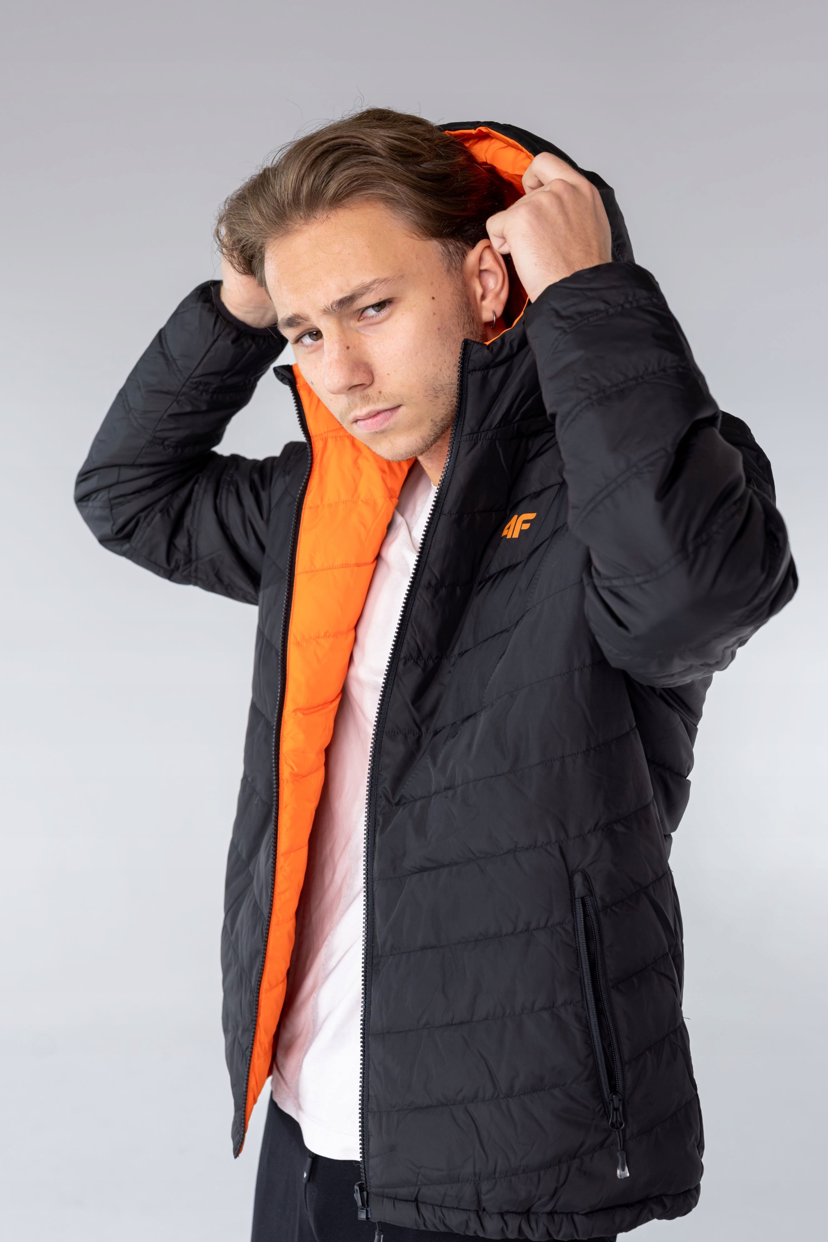 Черная куртка для мужчин 4F с капюшоном спортивных зимних двойных.