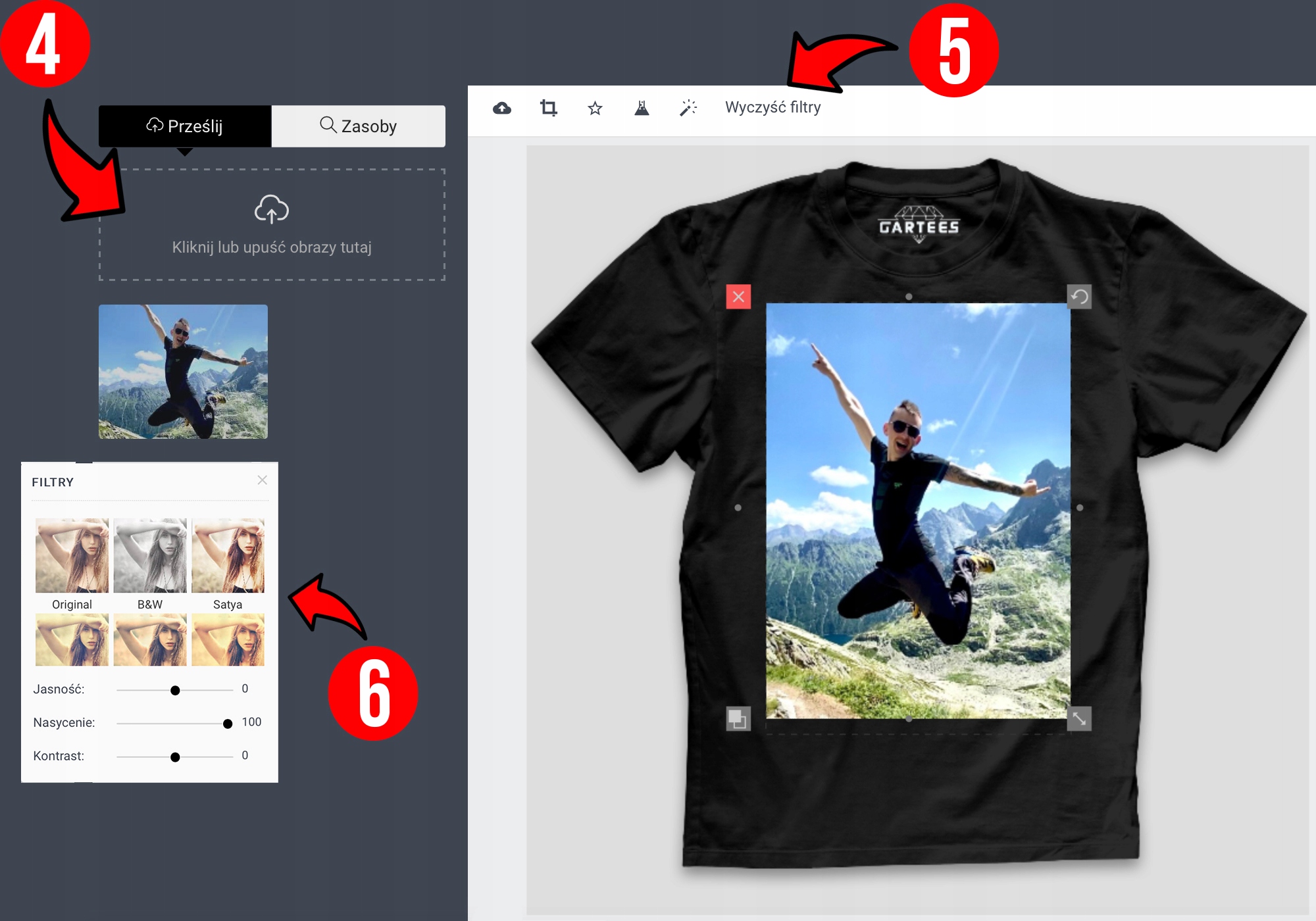 ✅ Создайте дизайн своей футболки, вы можете отправить любую свою графику или фото с компьютера, можете добавить надпись или графика из нашей базы данных. Вы можете добавить дополнительный принт на спину футболки