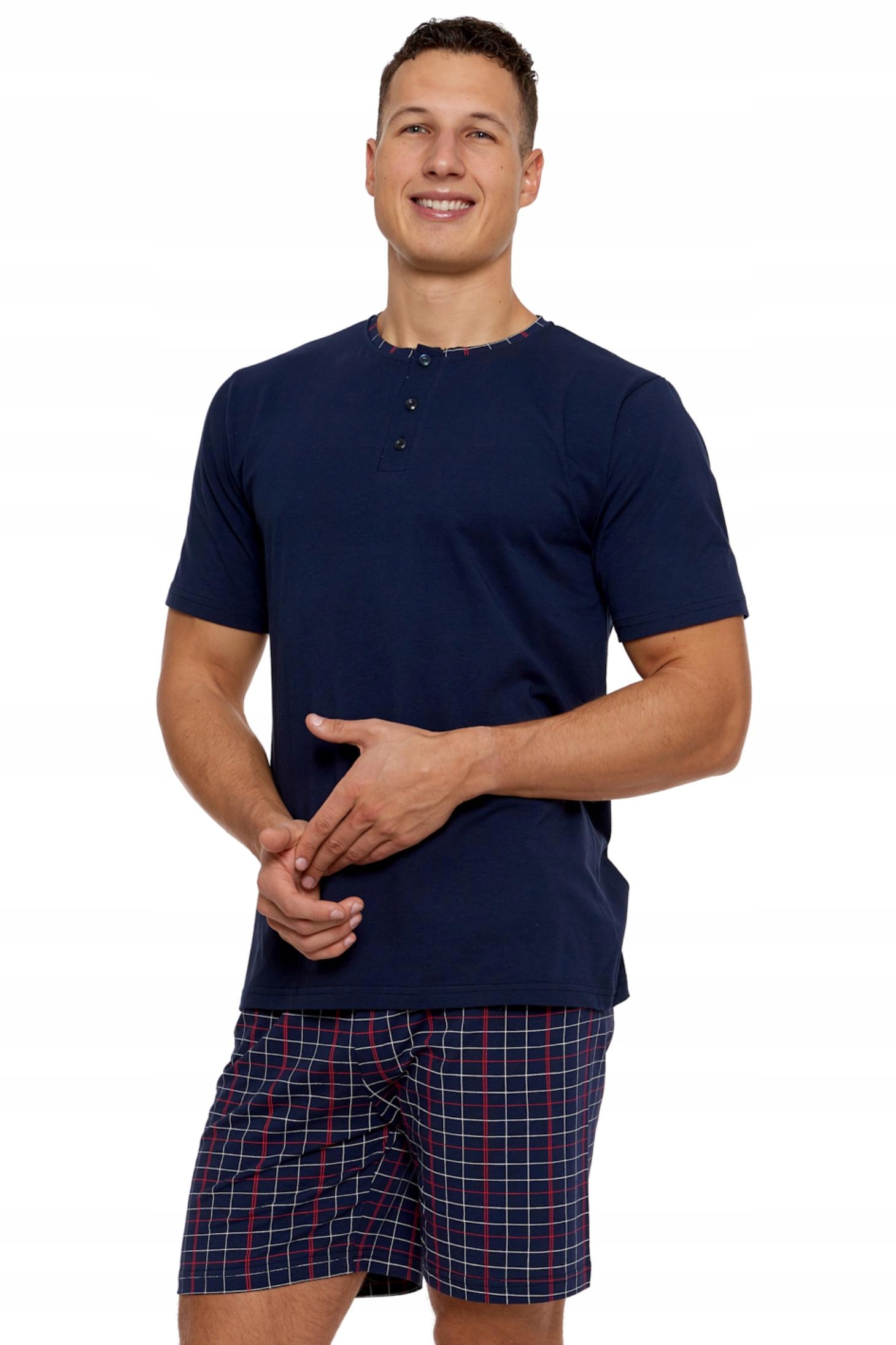 Мужская пижама moraj в темно -синем цвете, с тонким рисунком решетки на шортах. Прикрепленные кнопки, свободный, свободный порез, который не ограничивает движения, с приятным хлопком, для лучшего и спокойного сна, добавление эластана делает материал слегка эластичным и, таким образом, обеспечивает больший комфорт ношения и посадки. резина.