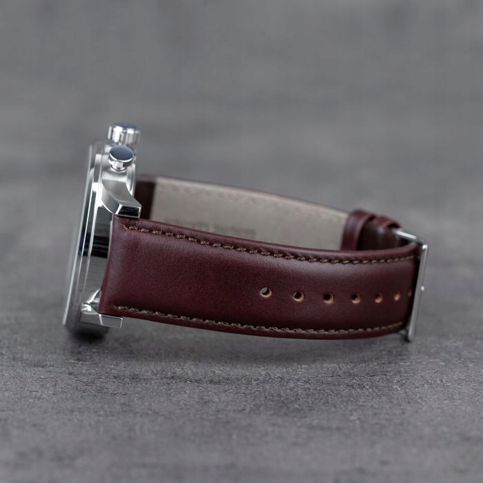 Смотреть Он оснащен качеством натурального кожаного ремня высокого качества в цвете Браун , который не только прекрасно сочетается с темно -синим щитом, но и также Обеспечивает удобство использования в течение дня.