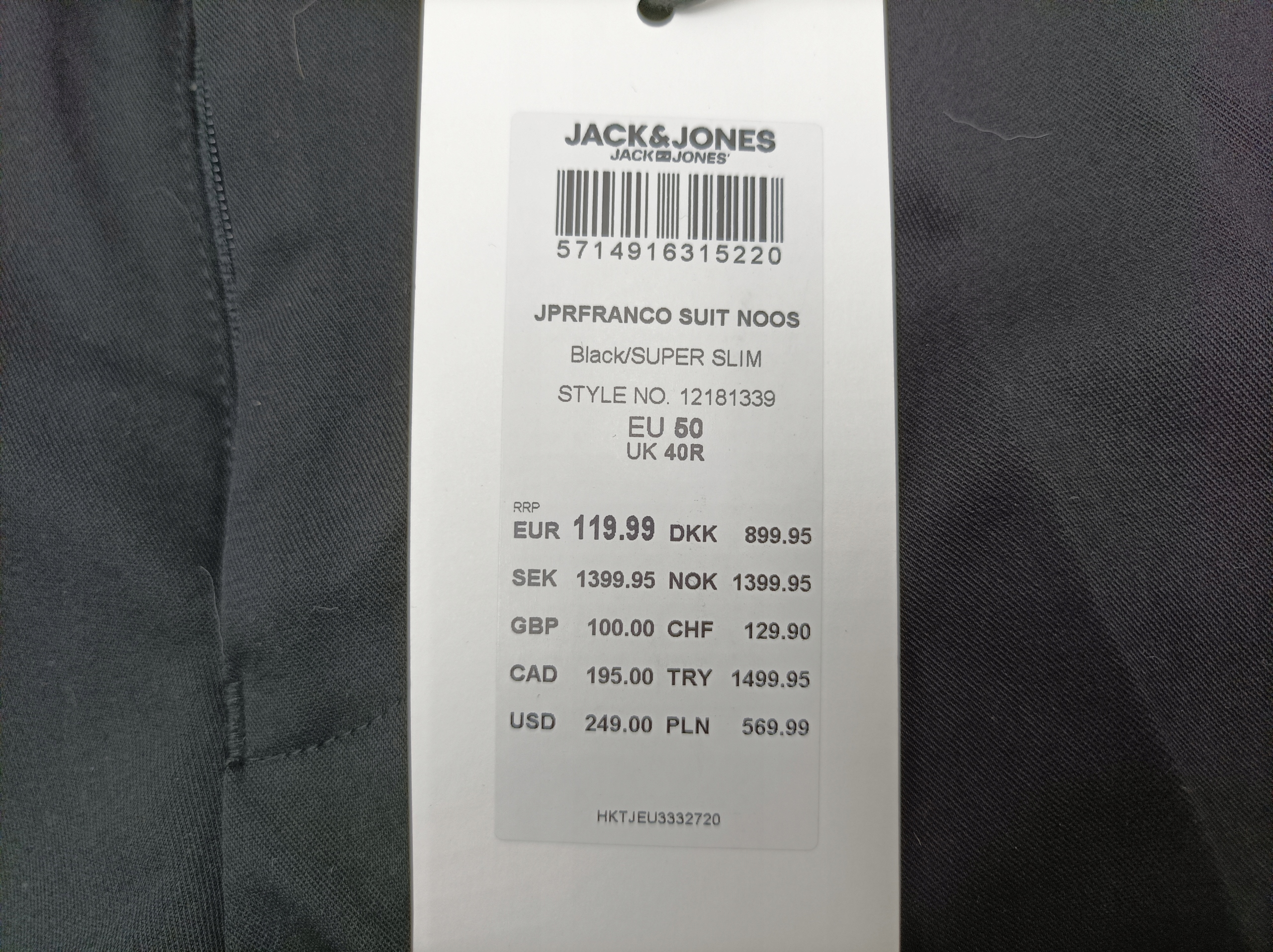 Чоловічий костюм Jack&Jones чорний 50 розмір (піджак + брюки)