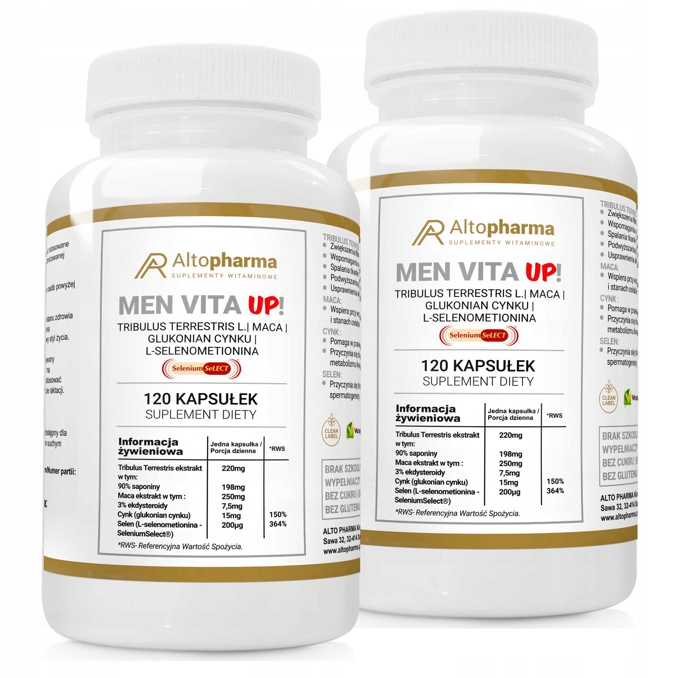 MEN VITA UP! незаменимая поддержка для мужчин. Tribulus Terrestris в первую очередь повышает уровень тестостерона. Мака помогает при повышенных усилиях и состояниях слабости. Эффект добавки связан не только с большей физической силой, но и с более быстрым ростом мышечной массы и лучшими анаболическими результатами. Помогает поддерживать высокое либидо, что также положительно влияет на сексуальную активность.