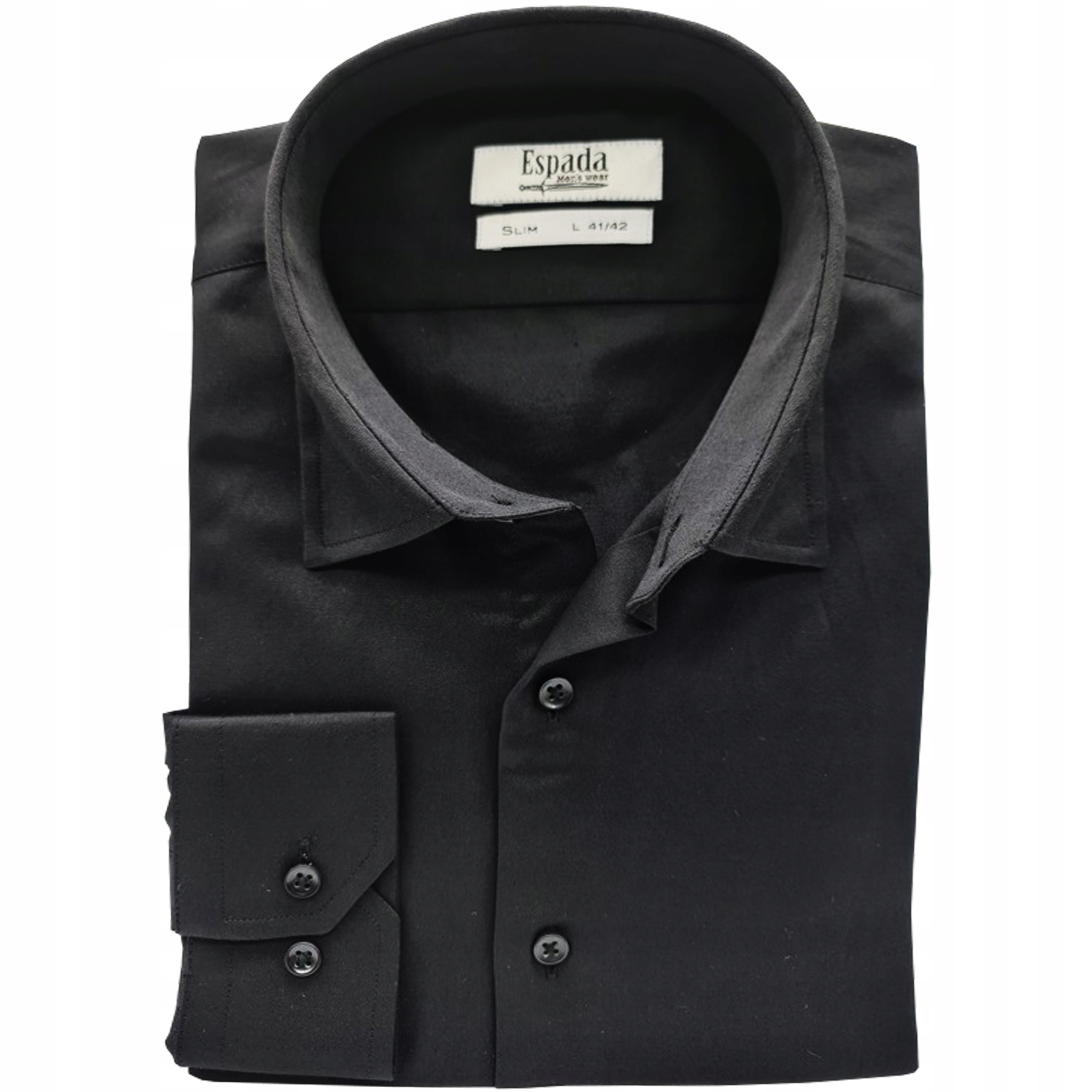 Черная гладкая модная тонкая подгонка l 41/42 рубашка