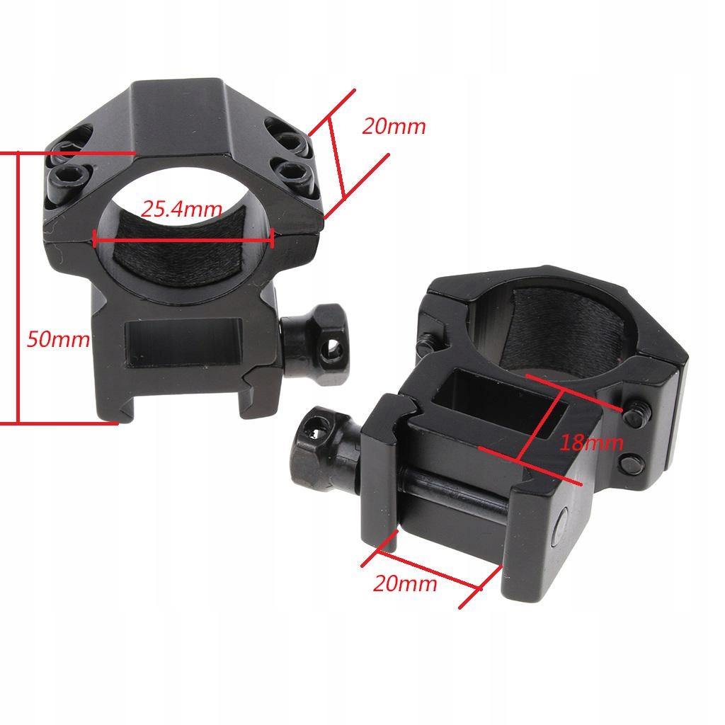 Кольца для крепления прицела диаметром 25,4 мм (1 дюйм) подходят для высокопрофильной планки типа «ласточкин хвост» для фонаря диаметром 20 мм
