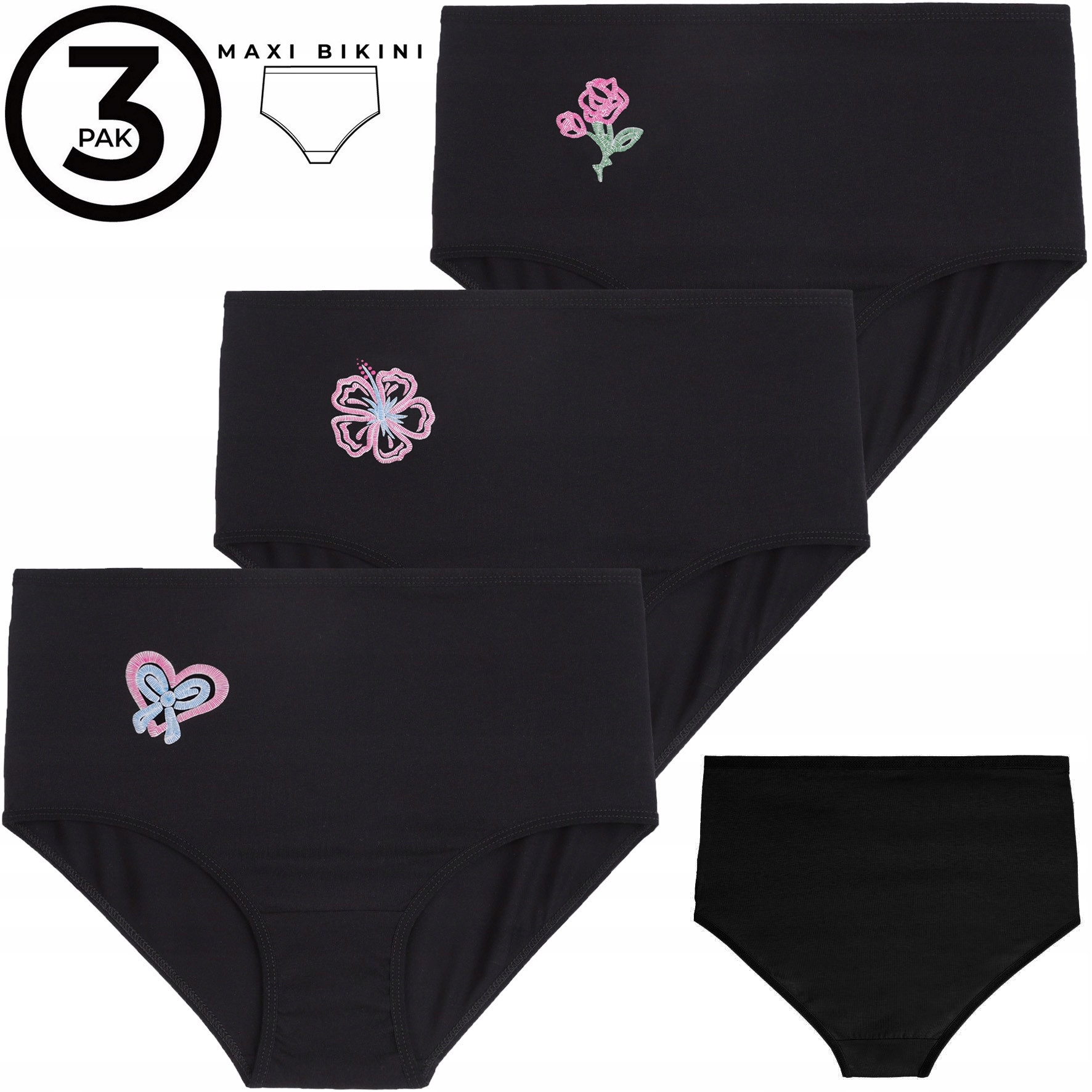 ЧЕРНЫЕ ЖЕНСКИЕ ТРУСЫ ИЗ ХЛОПКА С ЦВЕТКАМИ МОРАХ, 3 ПАКЕТА R.L