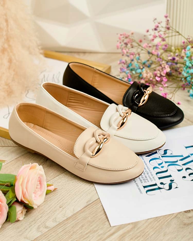Классические женские мокасины на плоской подошве. Модель изготовлена из экологической кожи. На носу есть украшение. Идеальная база на каждый день!