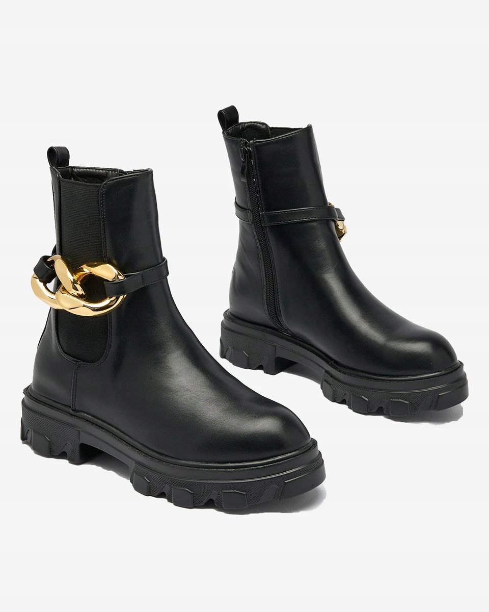 ЧЕРНЫЕ ЖЕНСКИЕ УТЕПЛЕННЫЕ БОТИНКИ ГЛАМУРНЫЕ ЗОЛОТЫЕ