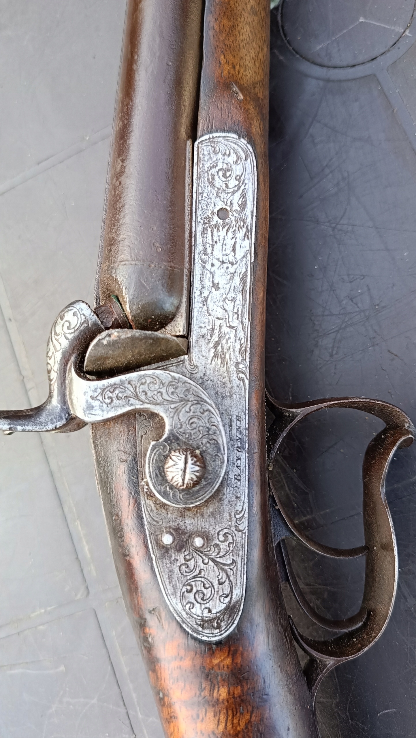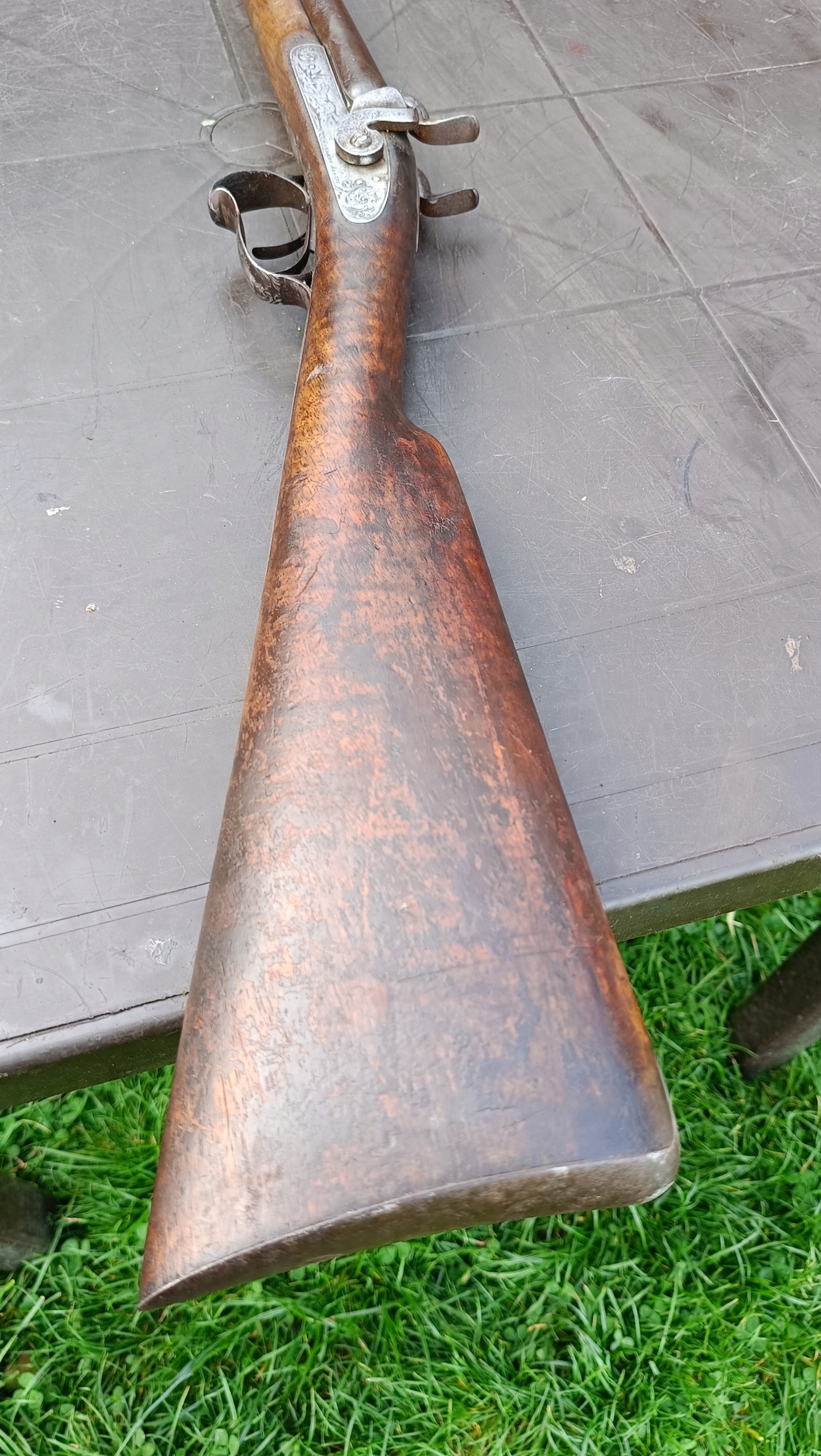 Загружено с фронта. Вы можете сделать сухой выстрел, двойное напряжение. Замок спуска работает хорошо. Прямая ствола в хорошем состоянии-маленькая яма. Дерево в хорошем состоянии. Камины прекрасно. Поля битвы были припаяны. И нет держателей ремней.