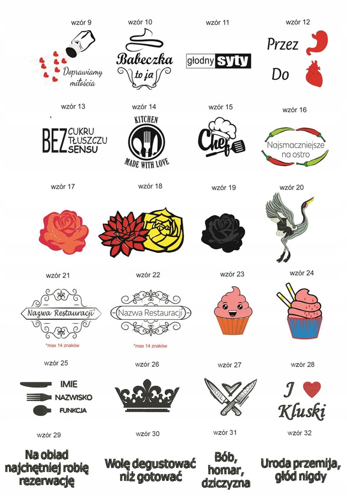 - вышивка логотипа «Ассоциации польских поваров и кондитеров»; li>