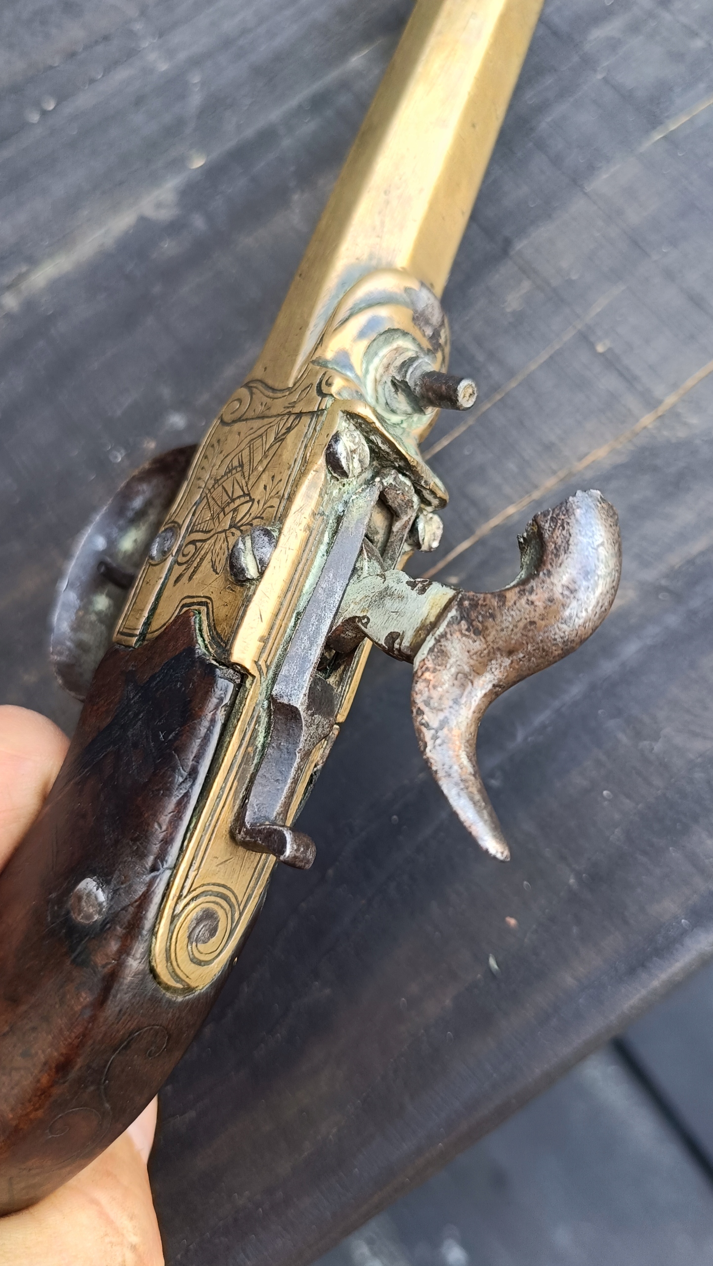 Привет всем. У меня есть черный пистолет для продажи. Очень интересная и редкая копия с штыком. Застежка -молния работает хорошо, у дерева есть следы трещины. Бочка в хорошем состоянии. Камин в порядке. Курек был отремонтирован, этот замок за краном не функциональна.