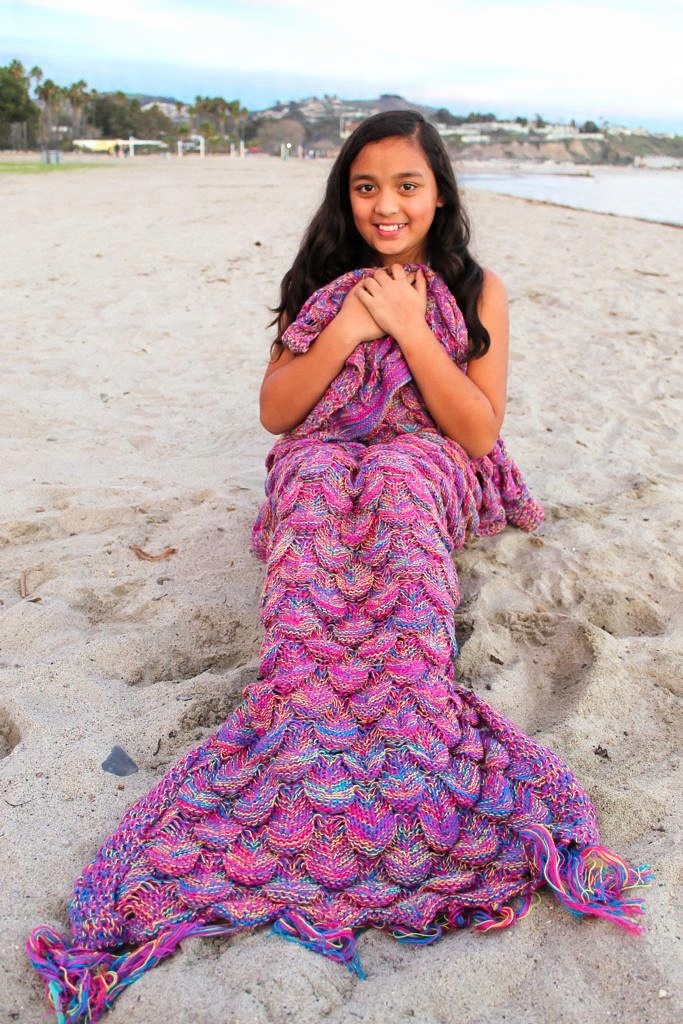 - теплое одеяло в форме хвоста сирены с полосами - единственное в своем роде