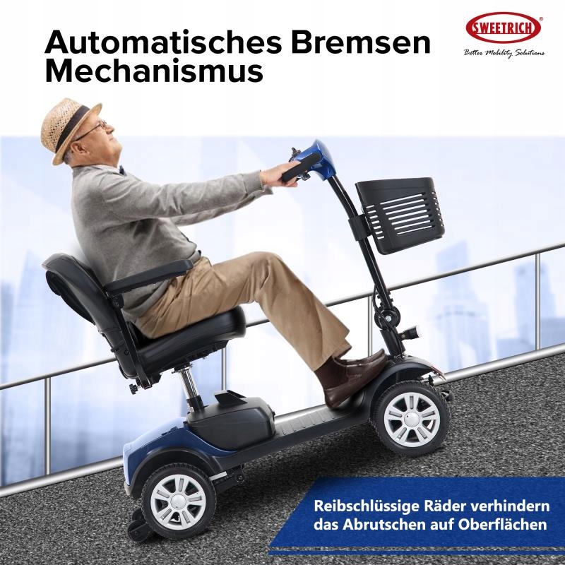 300 Вт Compact Four -Wheeled Mobile Scooter для снаружи, диапазон 15 км, синий