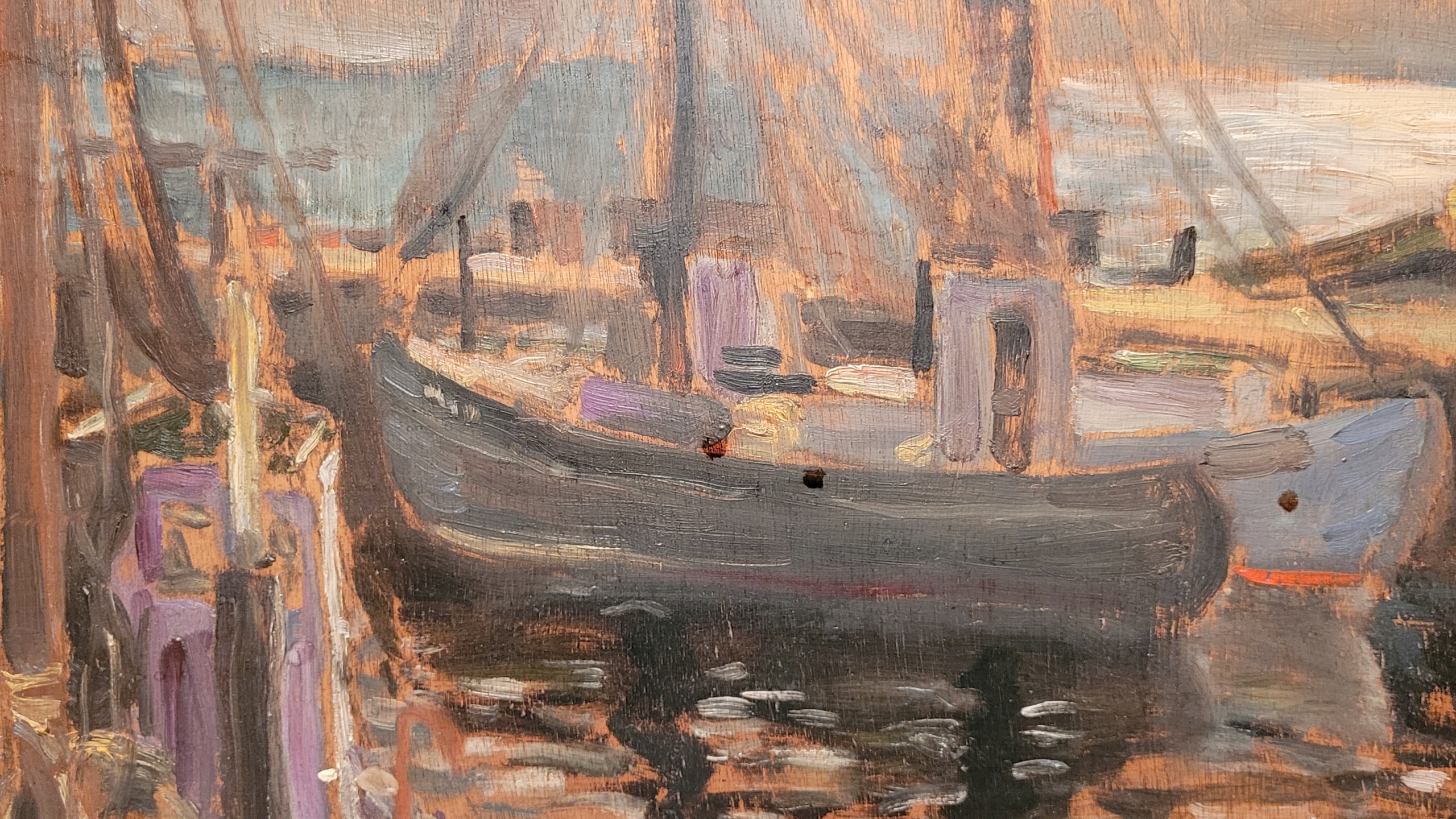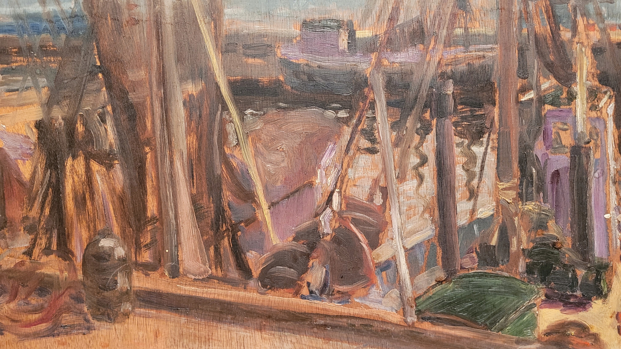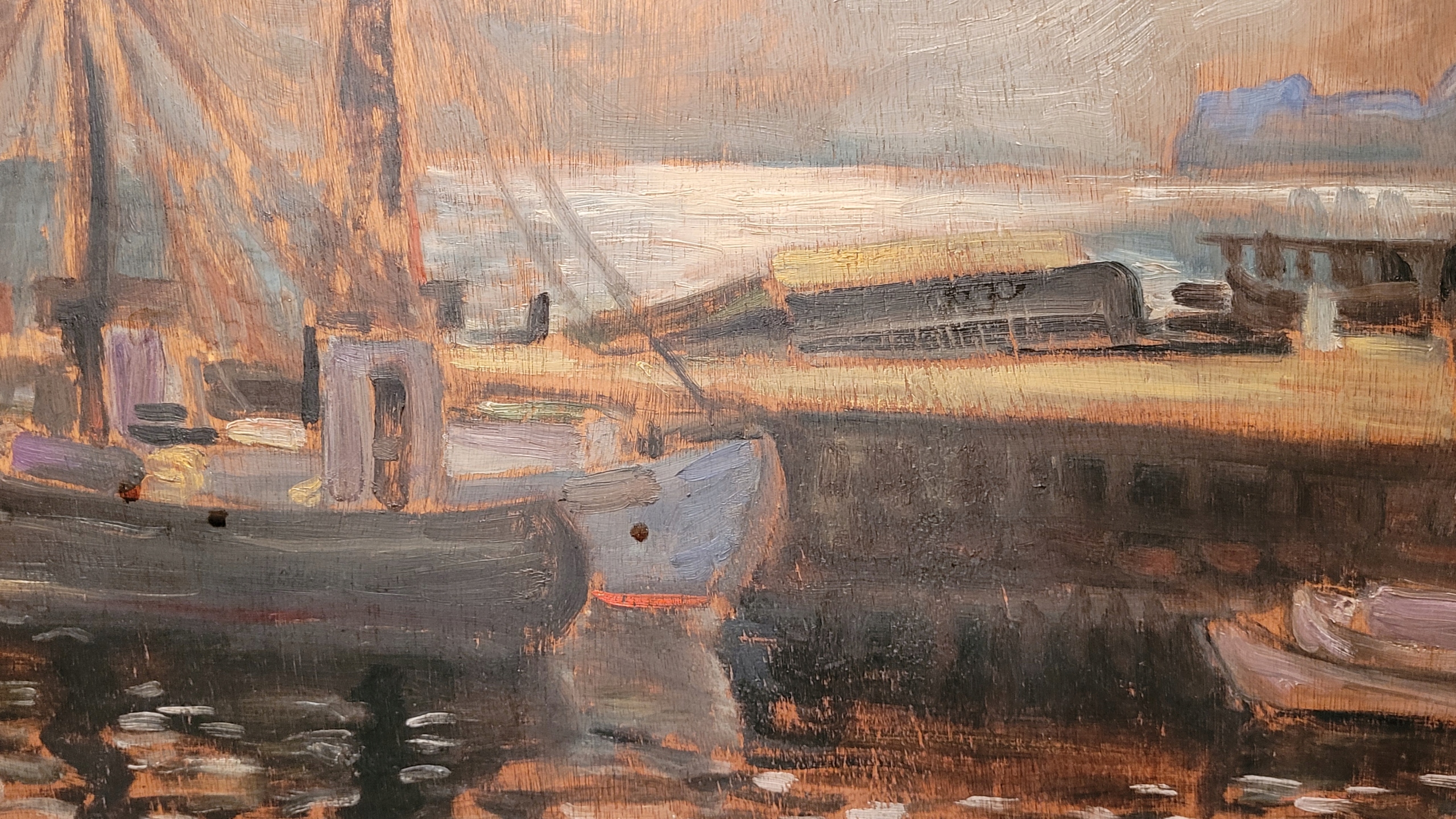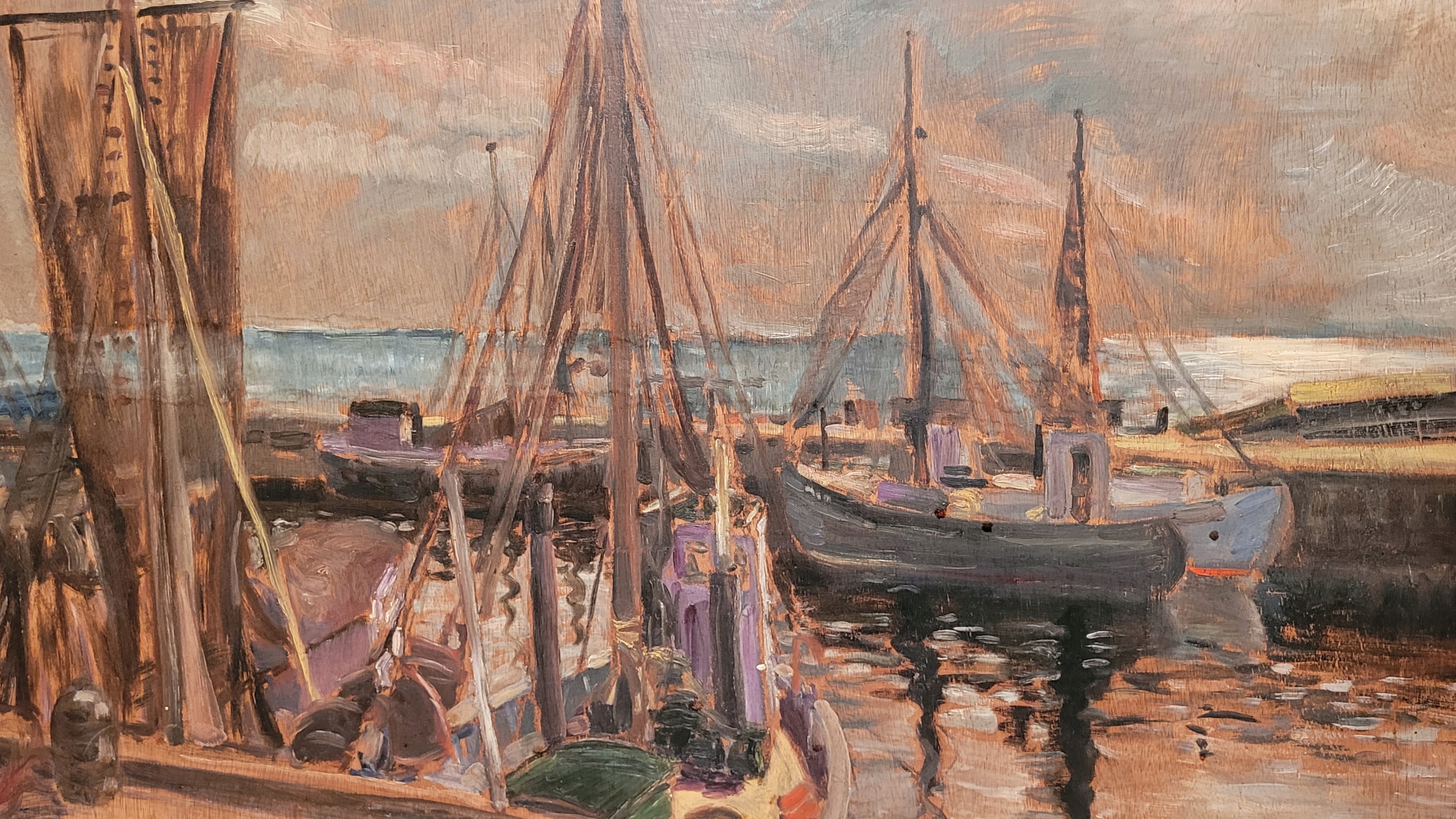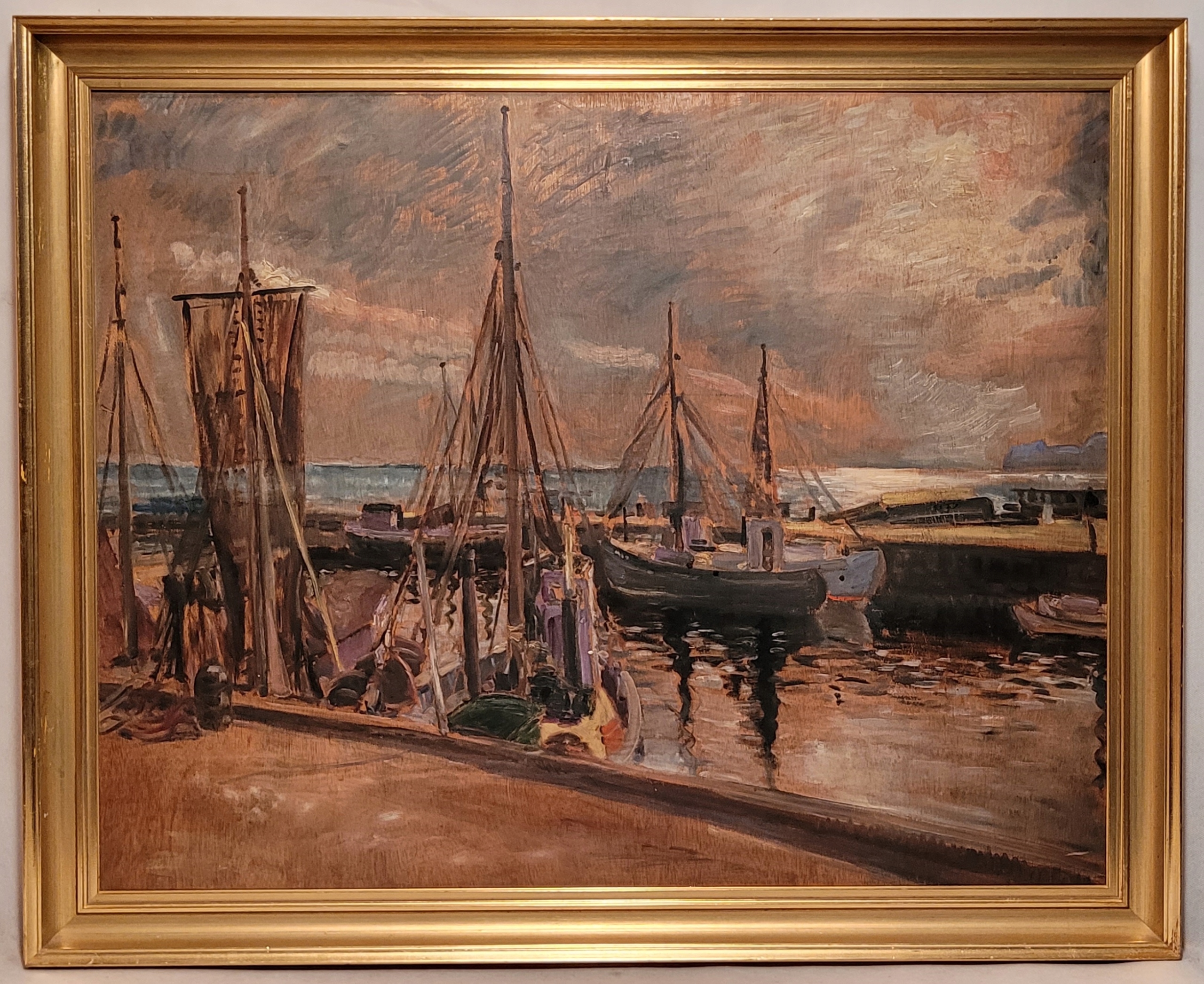 «Лодки в порту», красивая нефтяная картина - 1941
