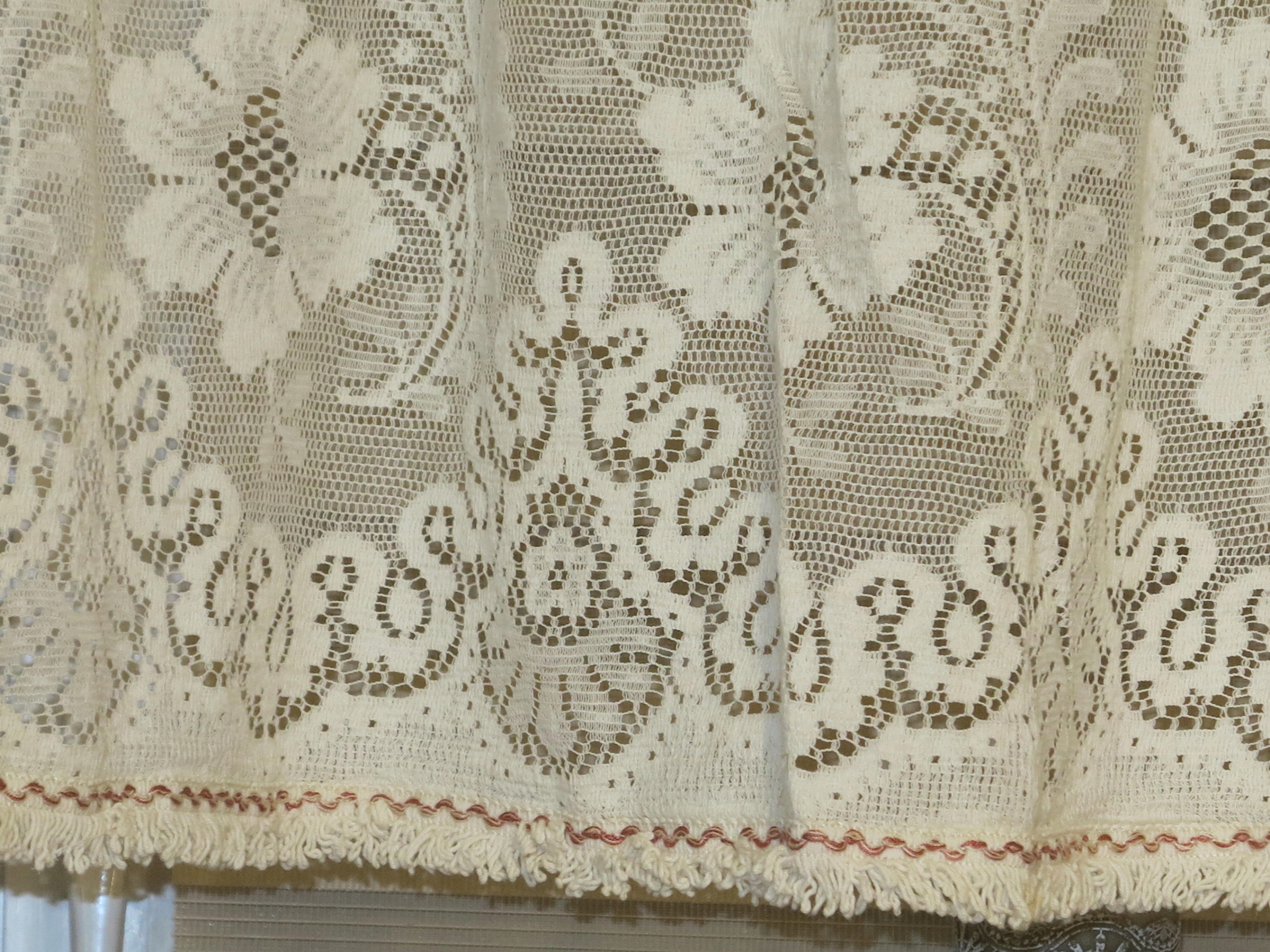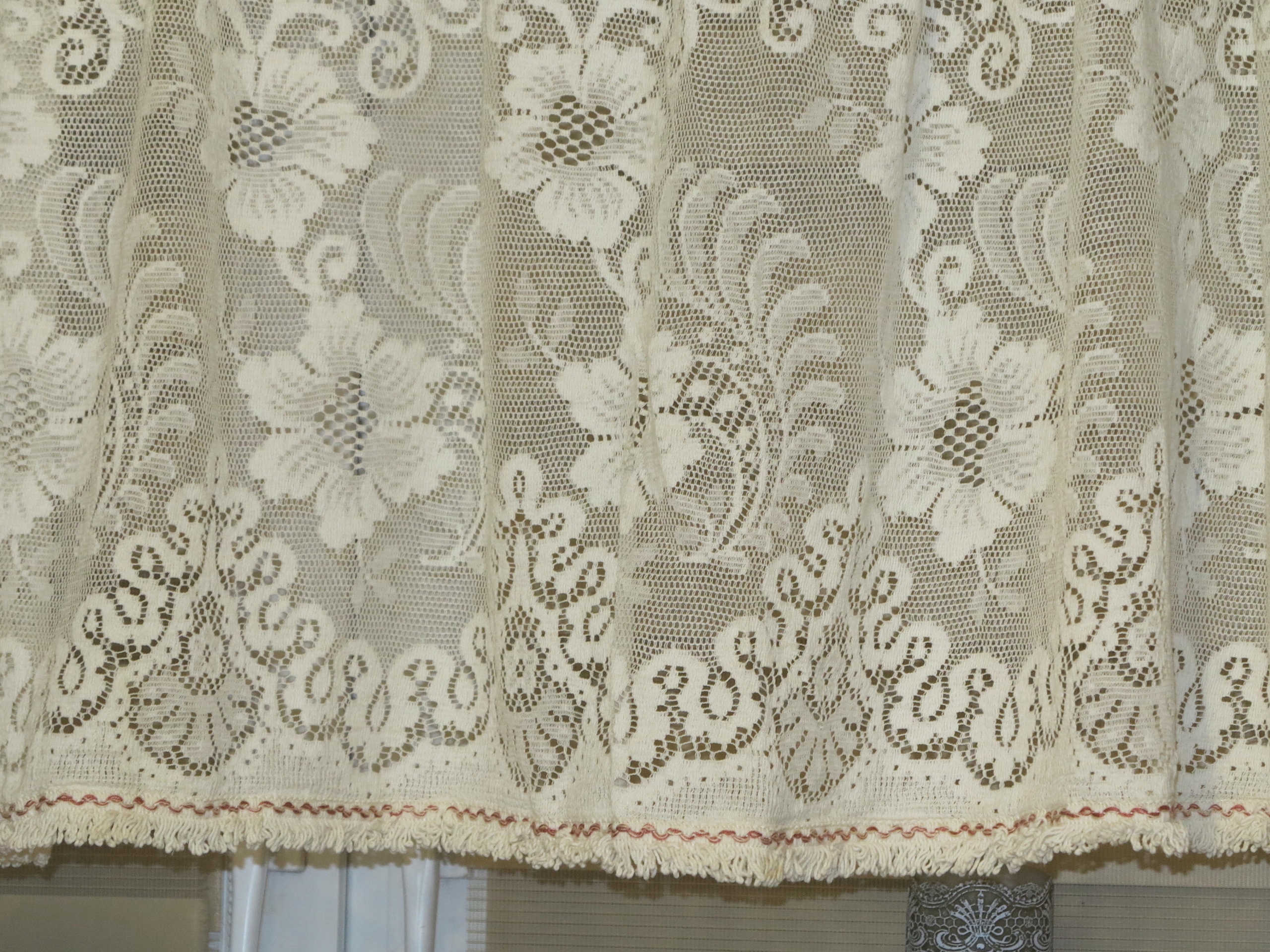 ПРЕКРАСНУЮ АНГЛИЙСКУЮ ШТОРУ ИЗ МЯГКОГО МАШИННОГО ХЛОПКОВОГО КРУЖЕВА. НИЗ ТАКЖЕ УКРАШЕН ХЛОПКОВОЙ БАХРИКОЙ. ЦВЕТ ЭКРУ
