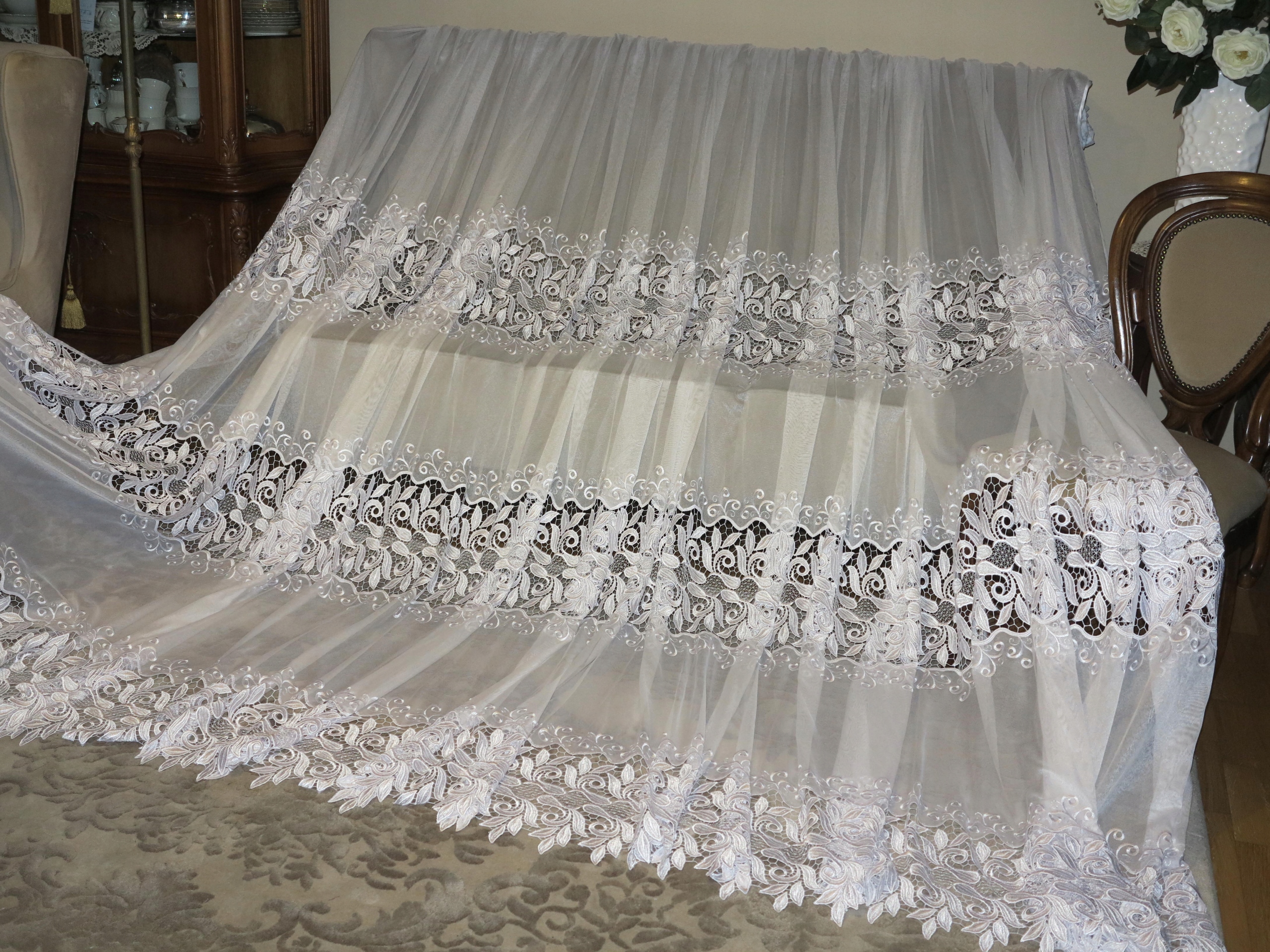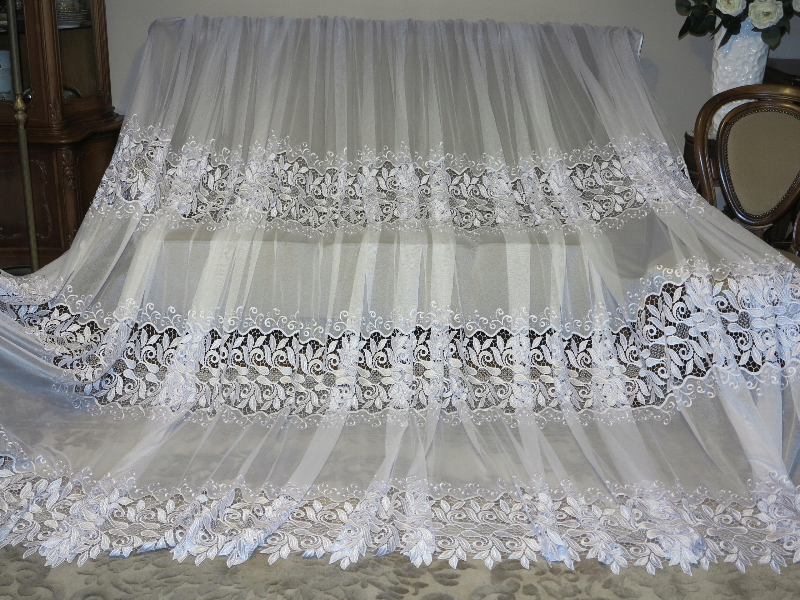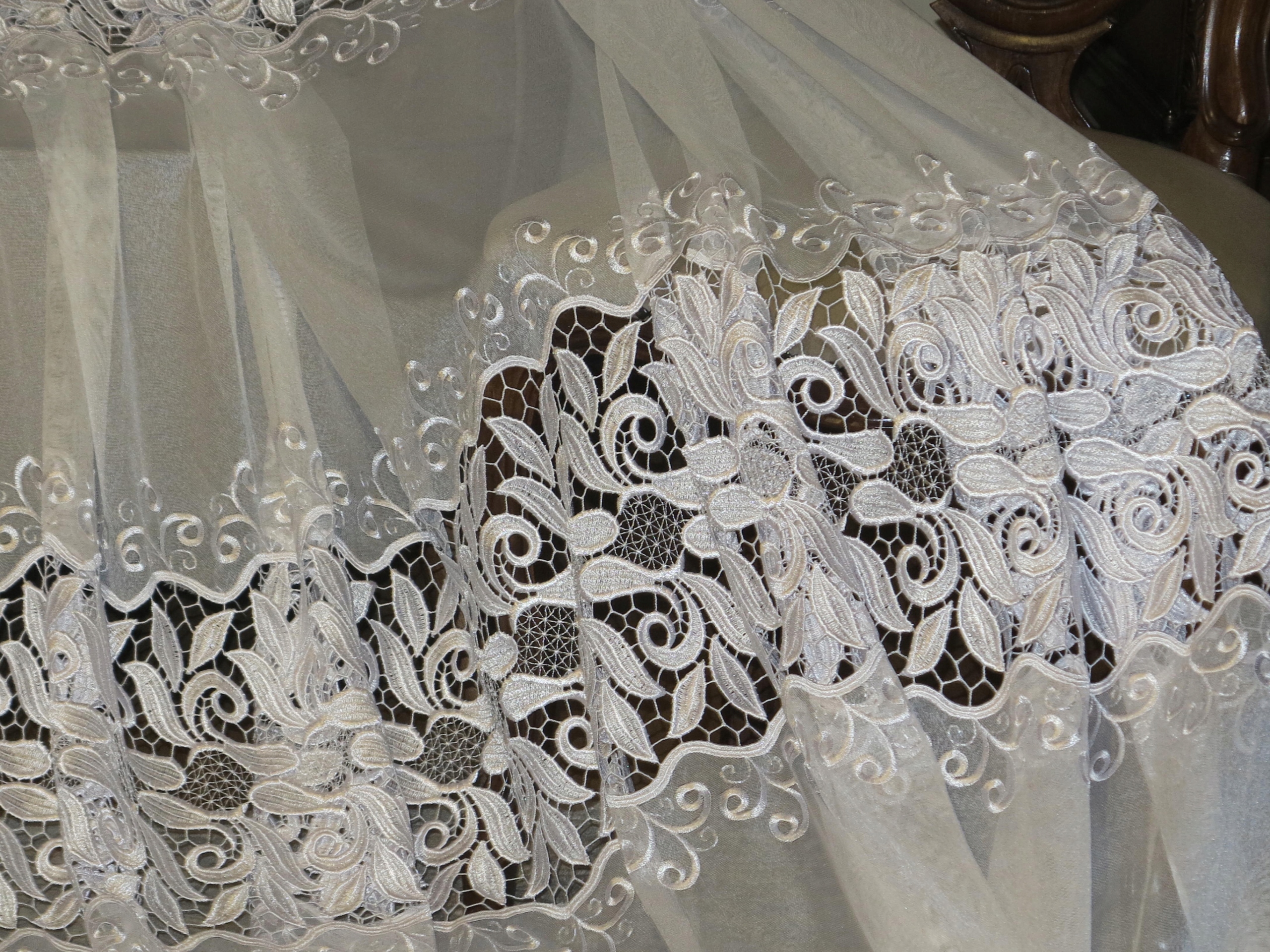 замечательный огромный билельтный занавес с богатством жемчужной гиптуры и вышивки. Занавес, тяжелая с количеством гиптуры. Это кусок отличных и красивых штор. Сам тип занавеса - это мягкий