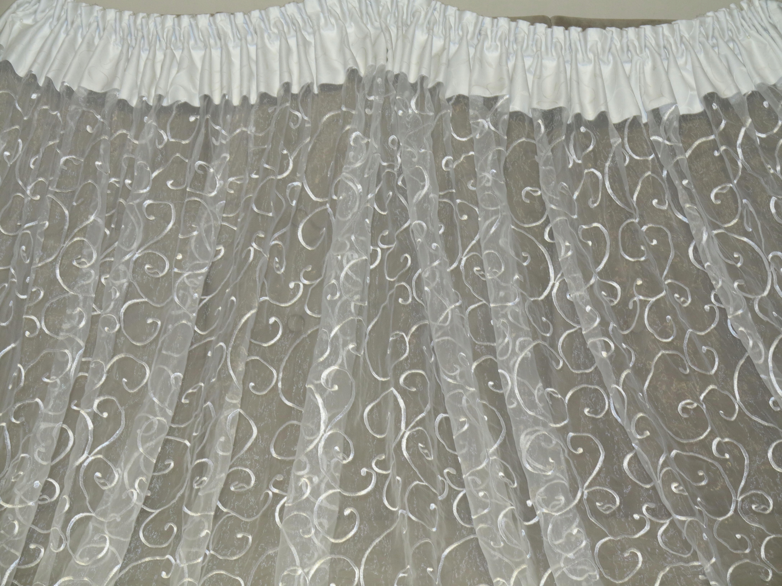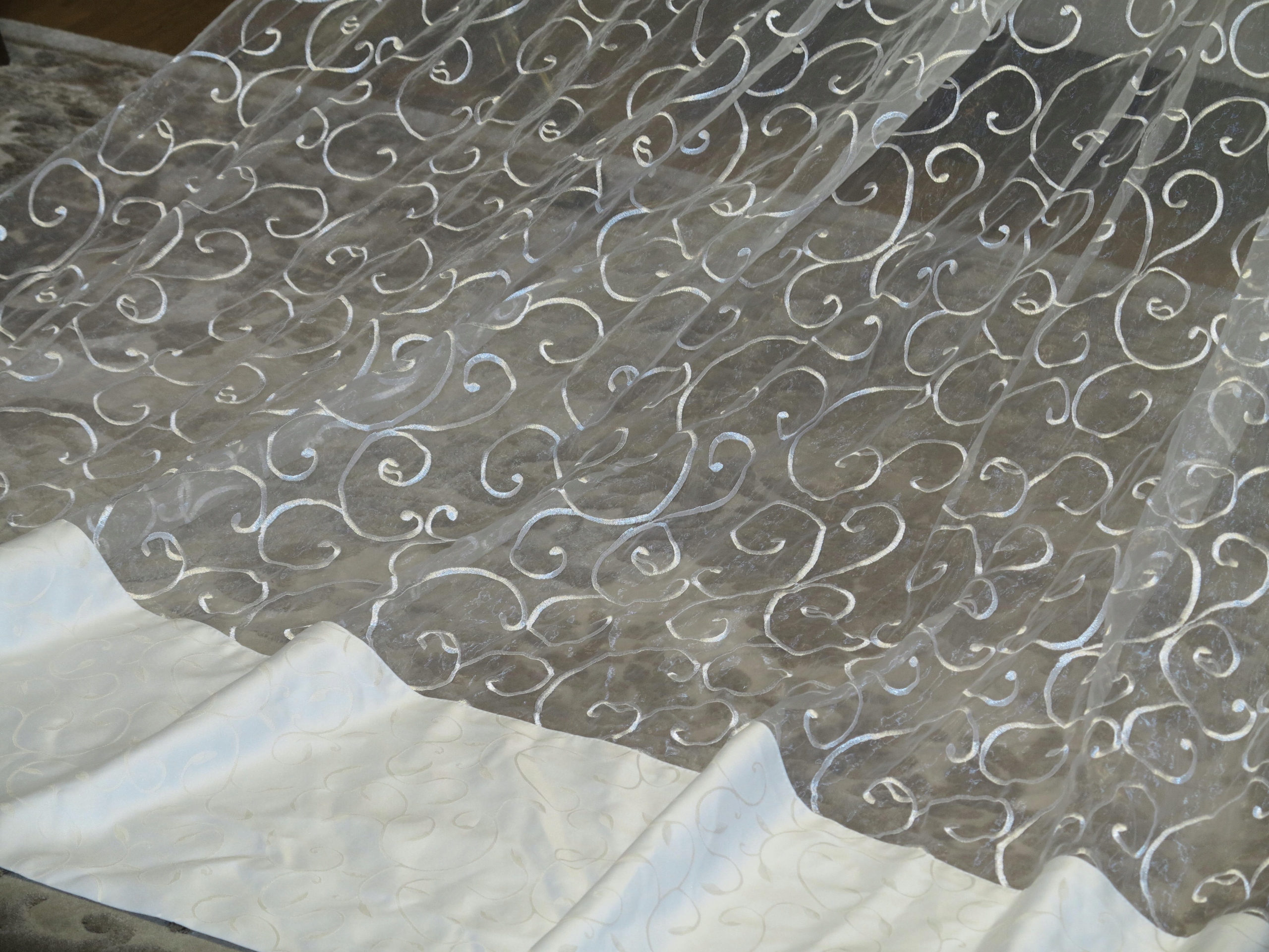 Предмет аукциона – красивая белая штора из мягкой органзы, по всей поверхности украшенная вышитыми узорами, внизу и вверху с декоративными атласными полосками. Штора б/у, в очень хорошем состоянии и качестве. Рекомендую.