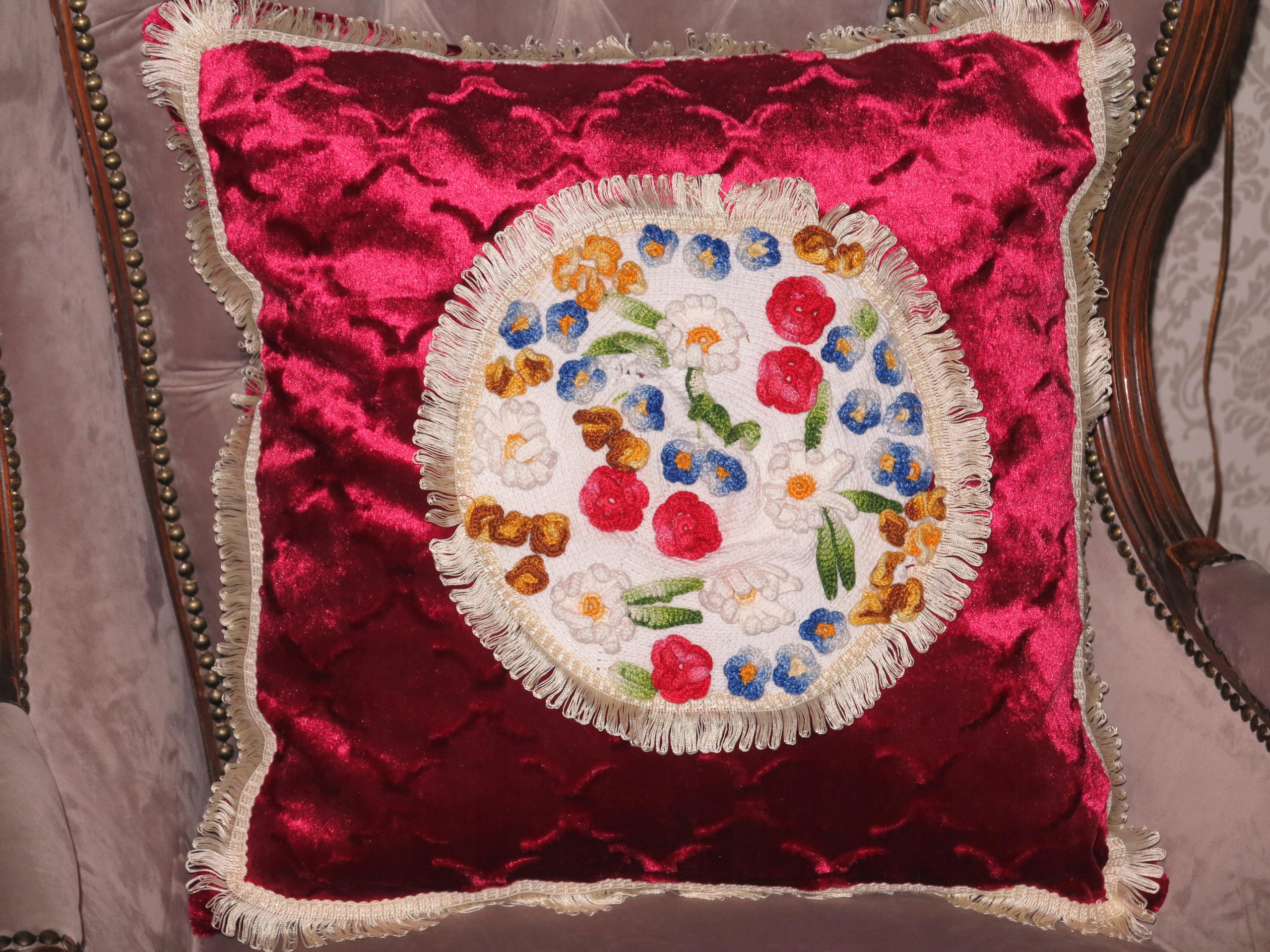 подушкой, сделанной из благородного толстого боргового бархатного бархата