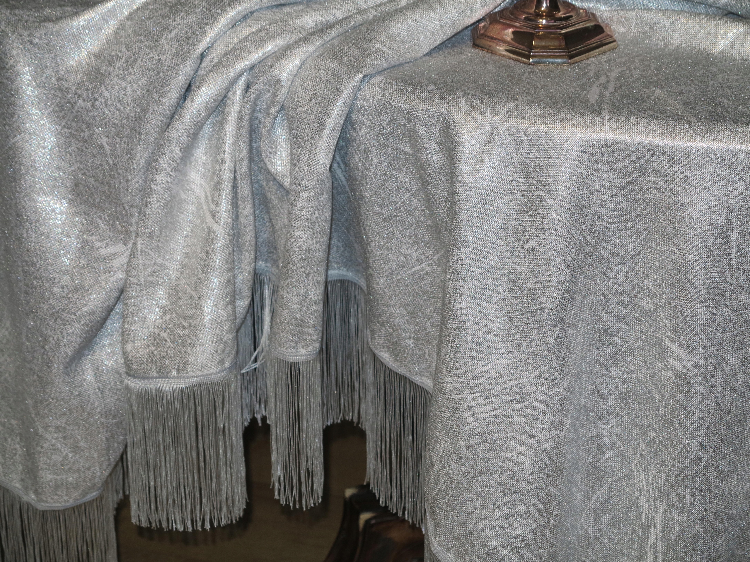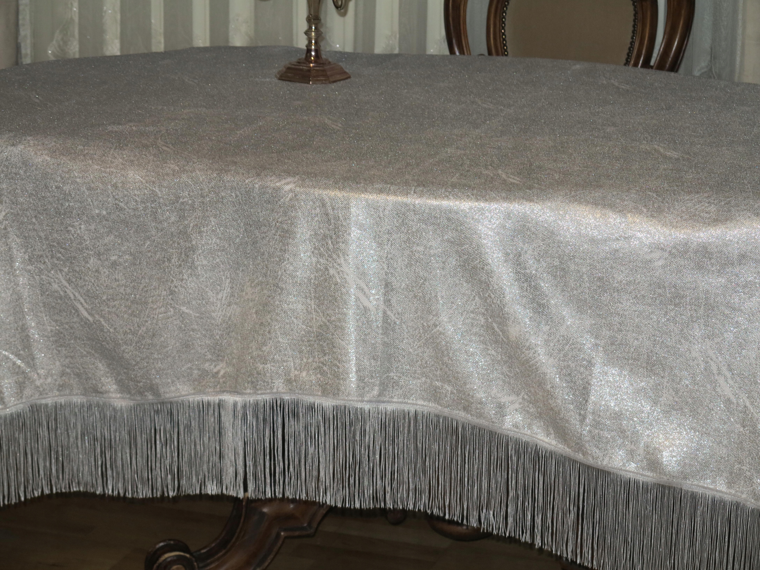 Замечательная скатерть, мерцающая с серебряной 14 см, залившей шелковые бахромы 232/138+fr