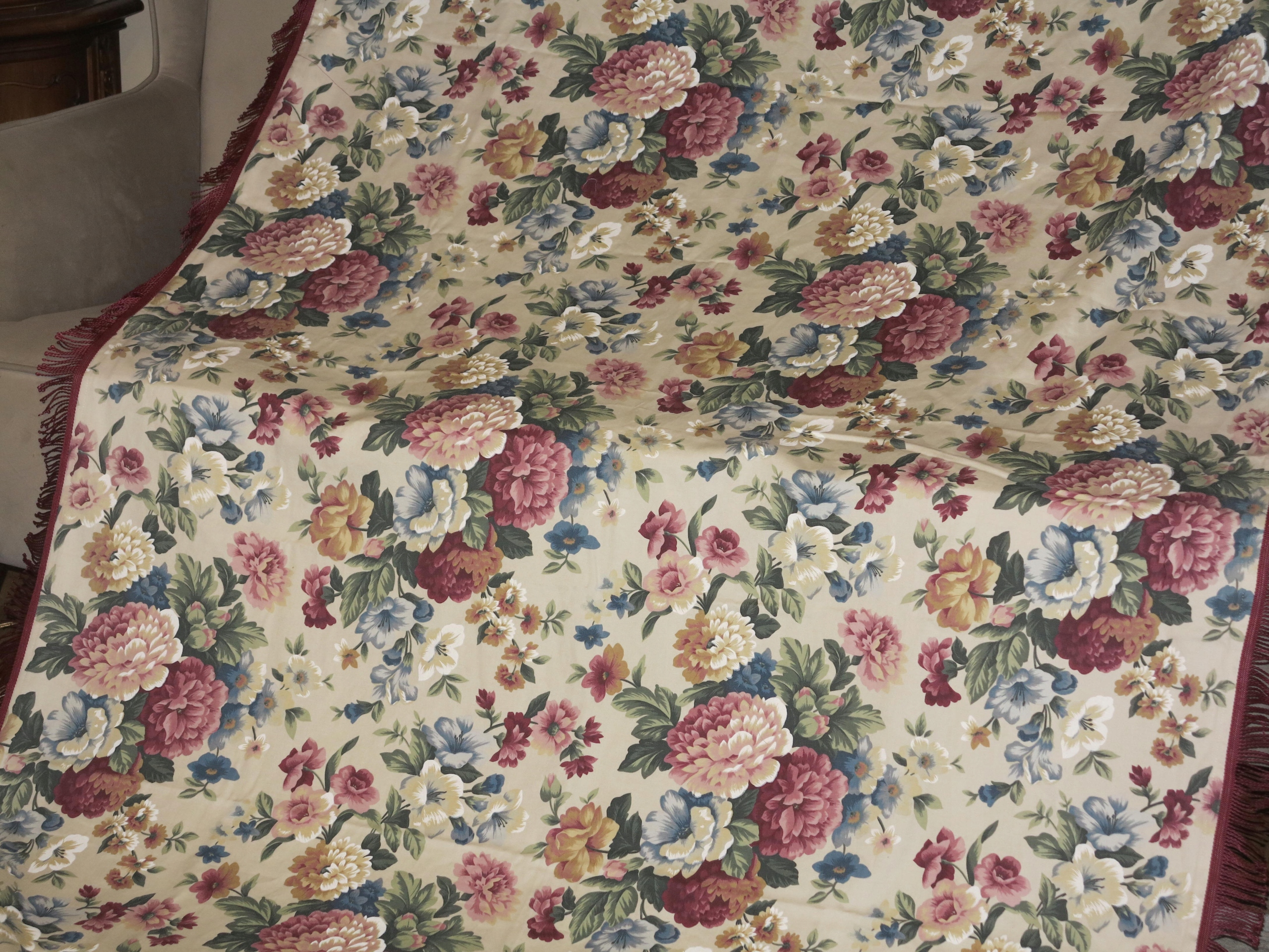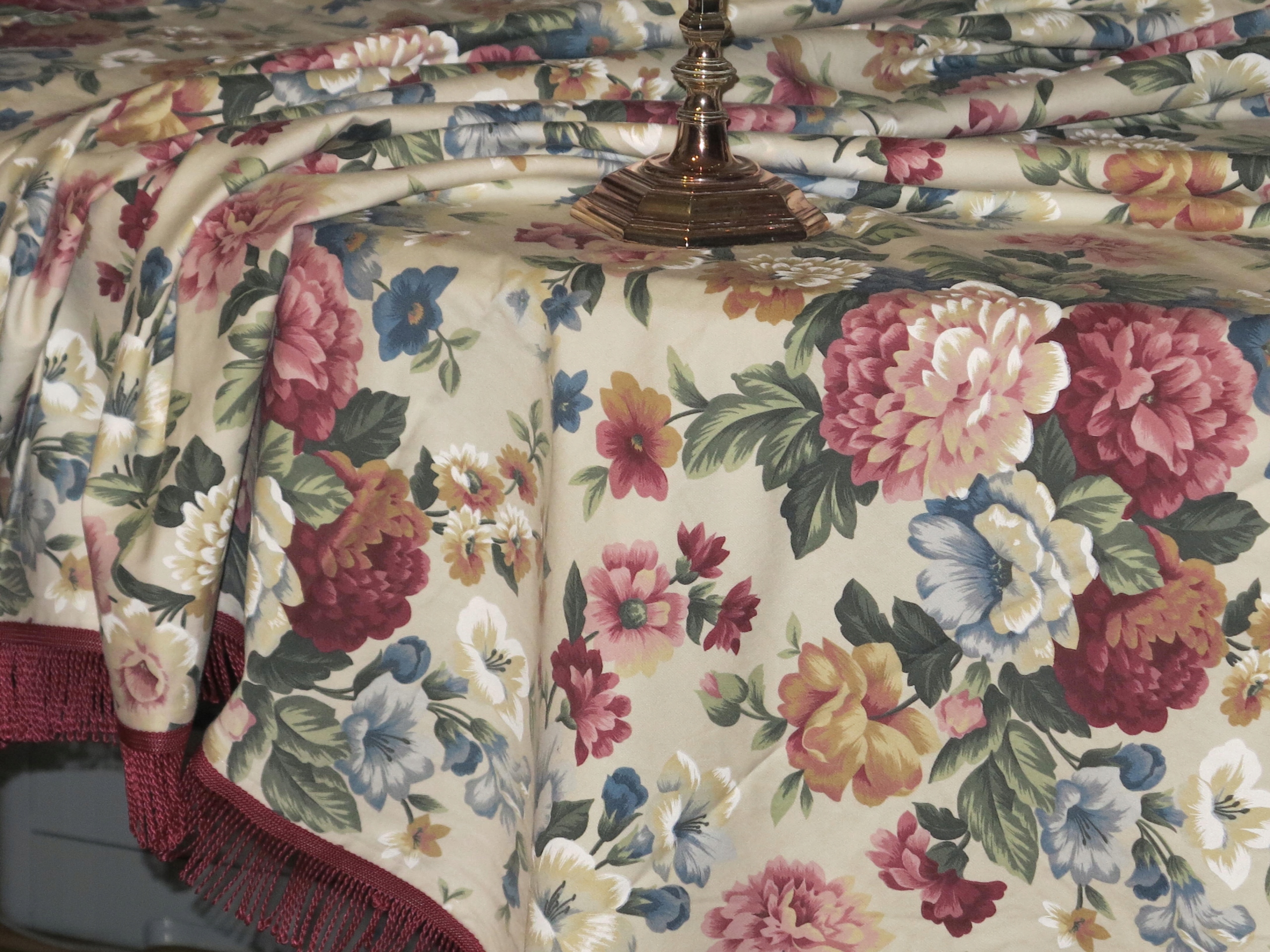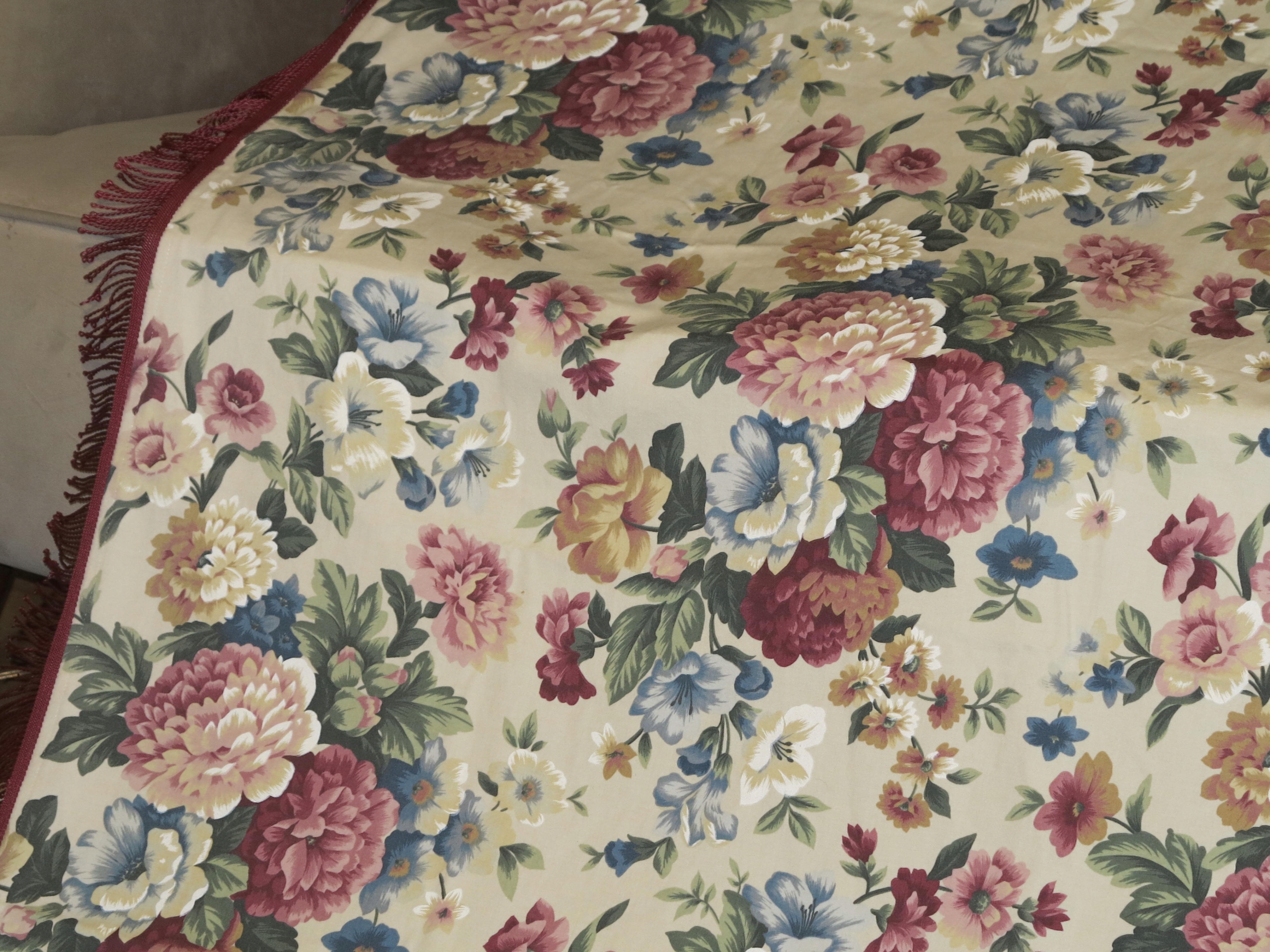 КРАСИВУЮ БОЛЬШУЮ АНГЛИЙСКУЮ СКАТЕРТЬ С БУКЕТАМИ ПИОНОВ. КЛАССИЧЕСКАЯ СКАТЕРТЬ ИЗ ХЛОПКОВОГО АТЛАСА. ОЧЕНЬ ЖИВЫЕ И ВЫРАЗИТЕЛЬНЫЕ ЦВЕТА. СВЕТЛО-БЕЖЕВЫЙ ФОН