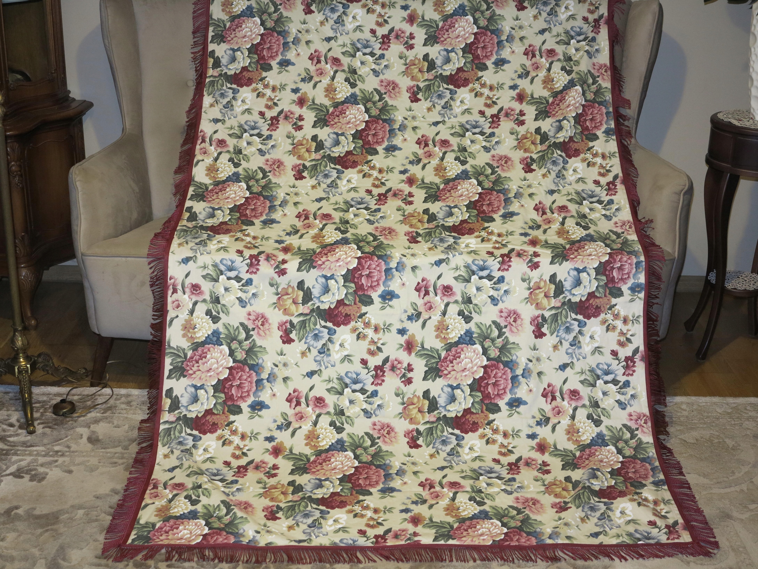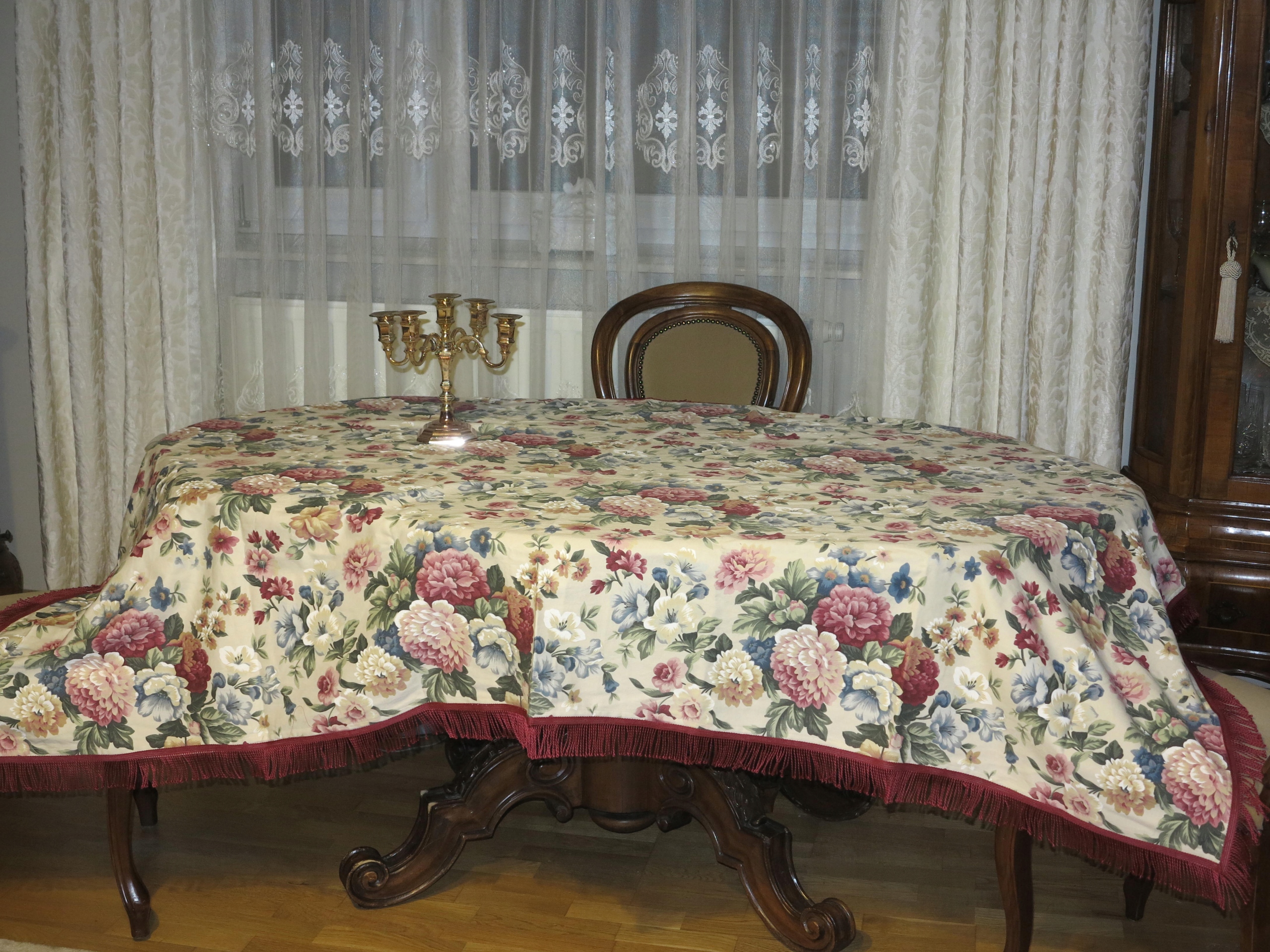 Предмет аукциона - чрезвычайно очаровательная английская скатерть с пионы, отделаны бахромой по периметру. Размеры скатерти: 202/131см+ с бахромой примерно 5см. Скатерть б/у, но в очень хорошем состоянии и качестве. Рекомендую, будет красивое украшение стола.
