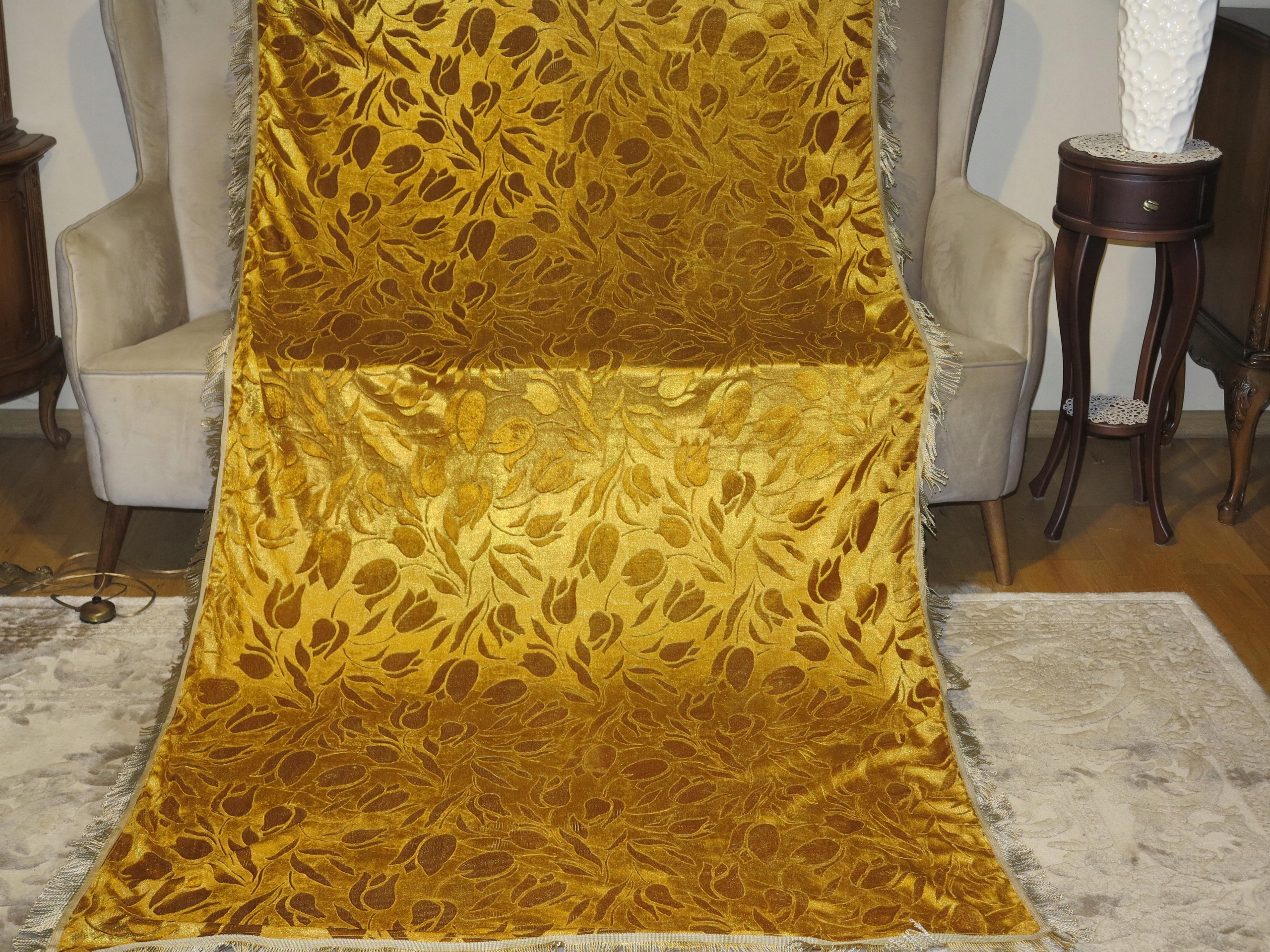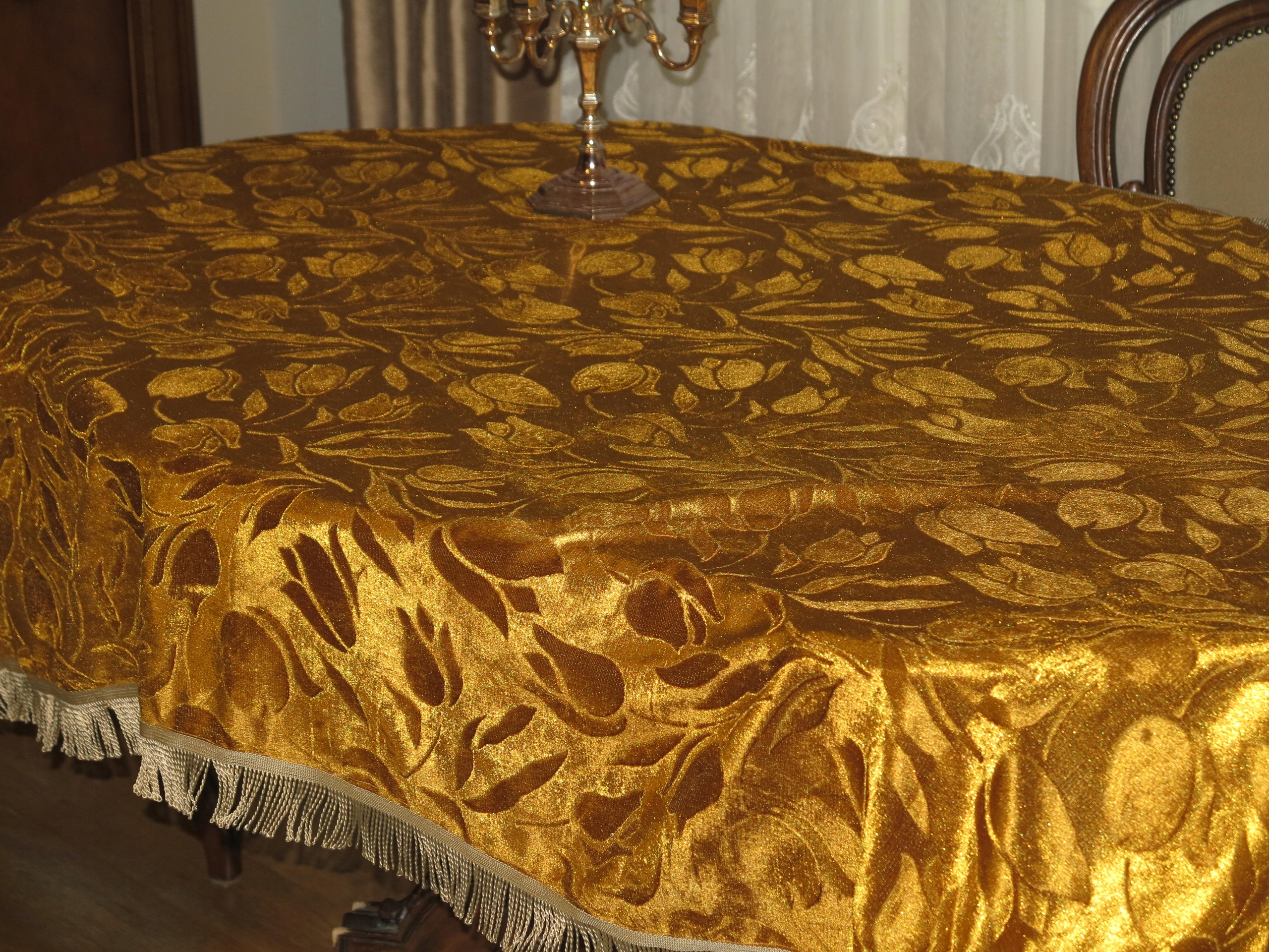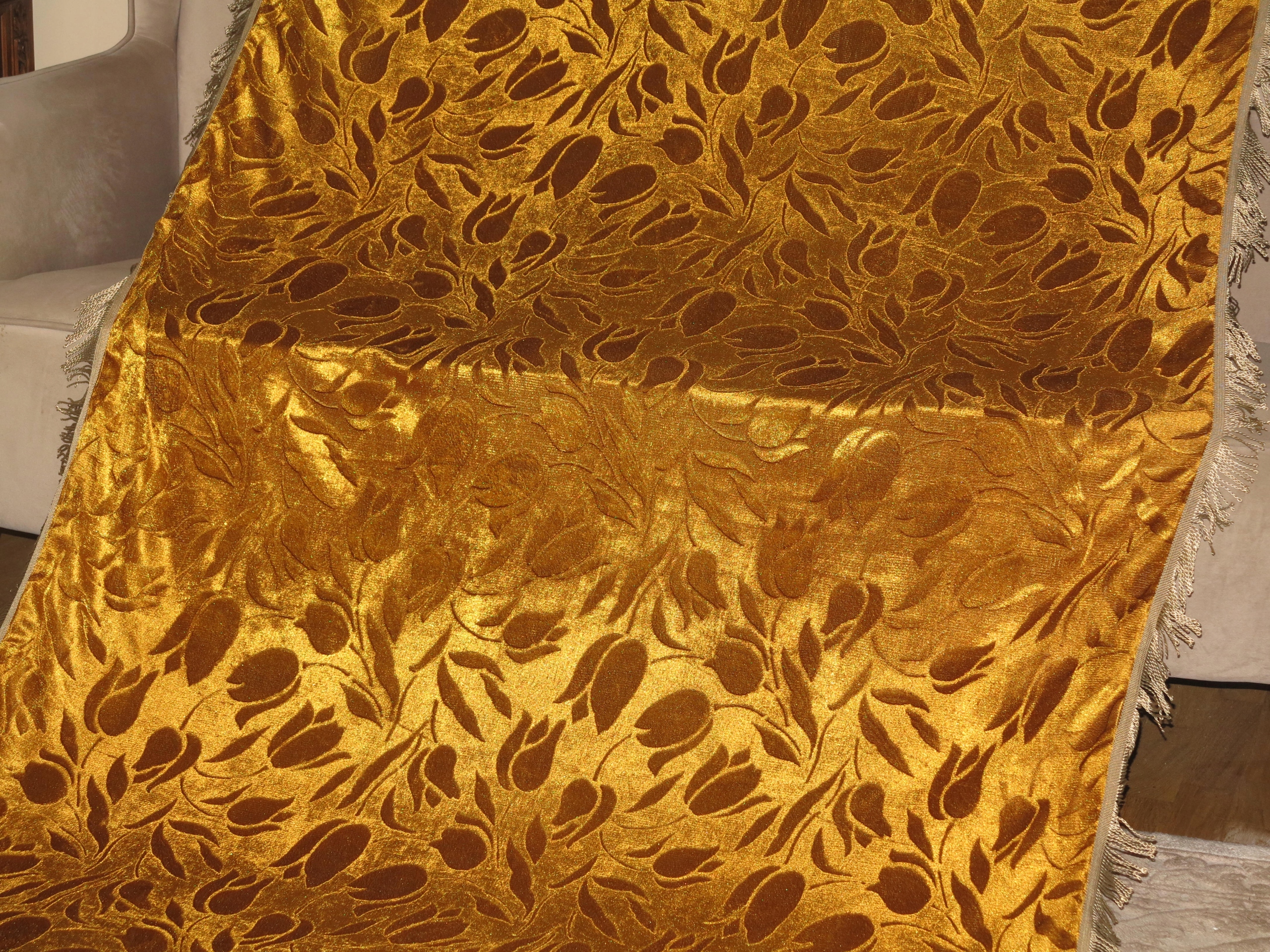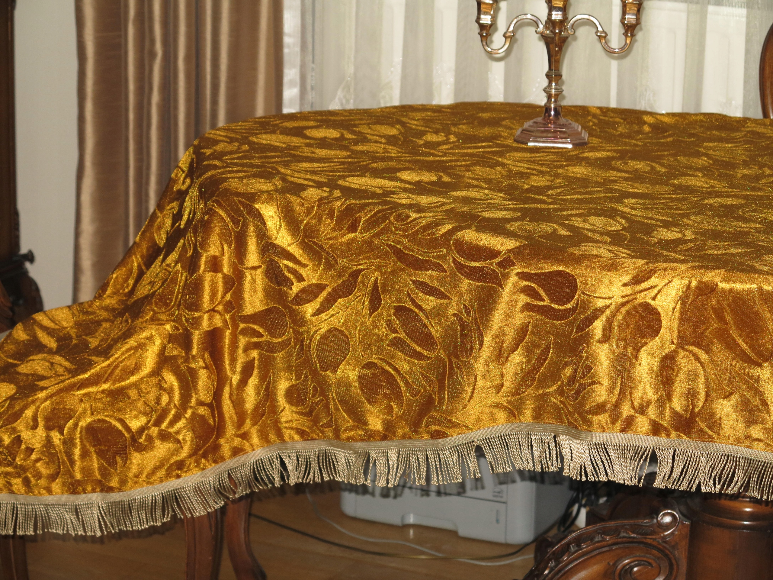 КРАСИВАЯ, КОРОЛЕВСКАЯ, ОГРОМНАЯ СКАТЕРЬ, ИЗ ВЕЛЮРОВОГО БАРХАТА В ТЕМНОМ ЗОЛОТЕ. ЗОЛОТАЯ БАРОШКА ВОКРУГ