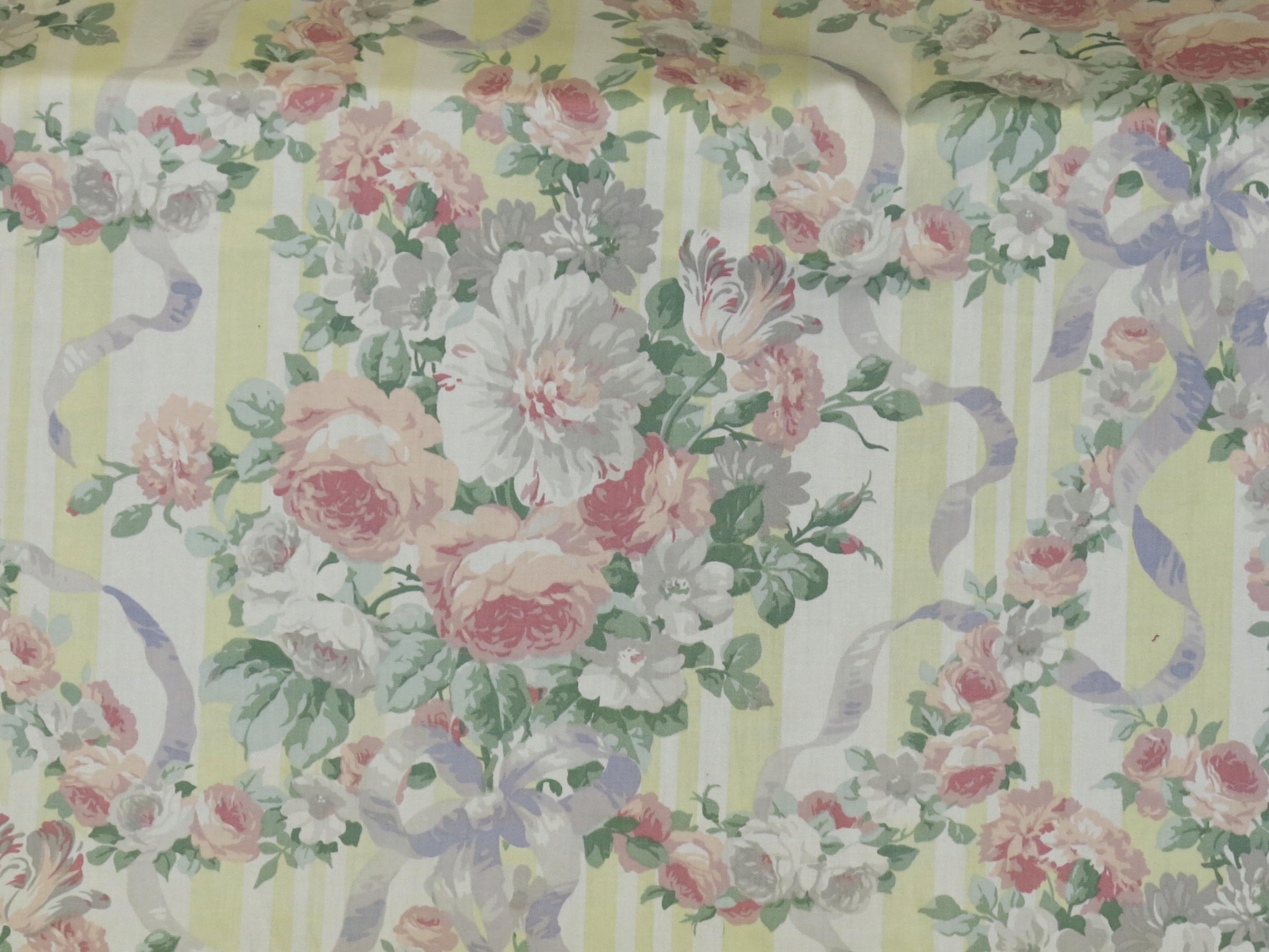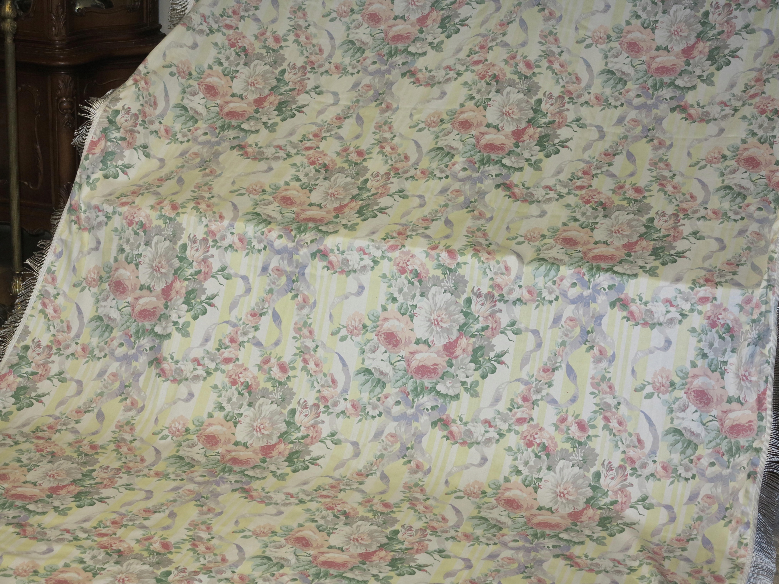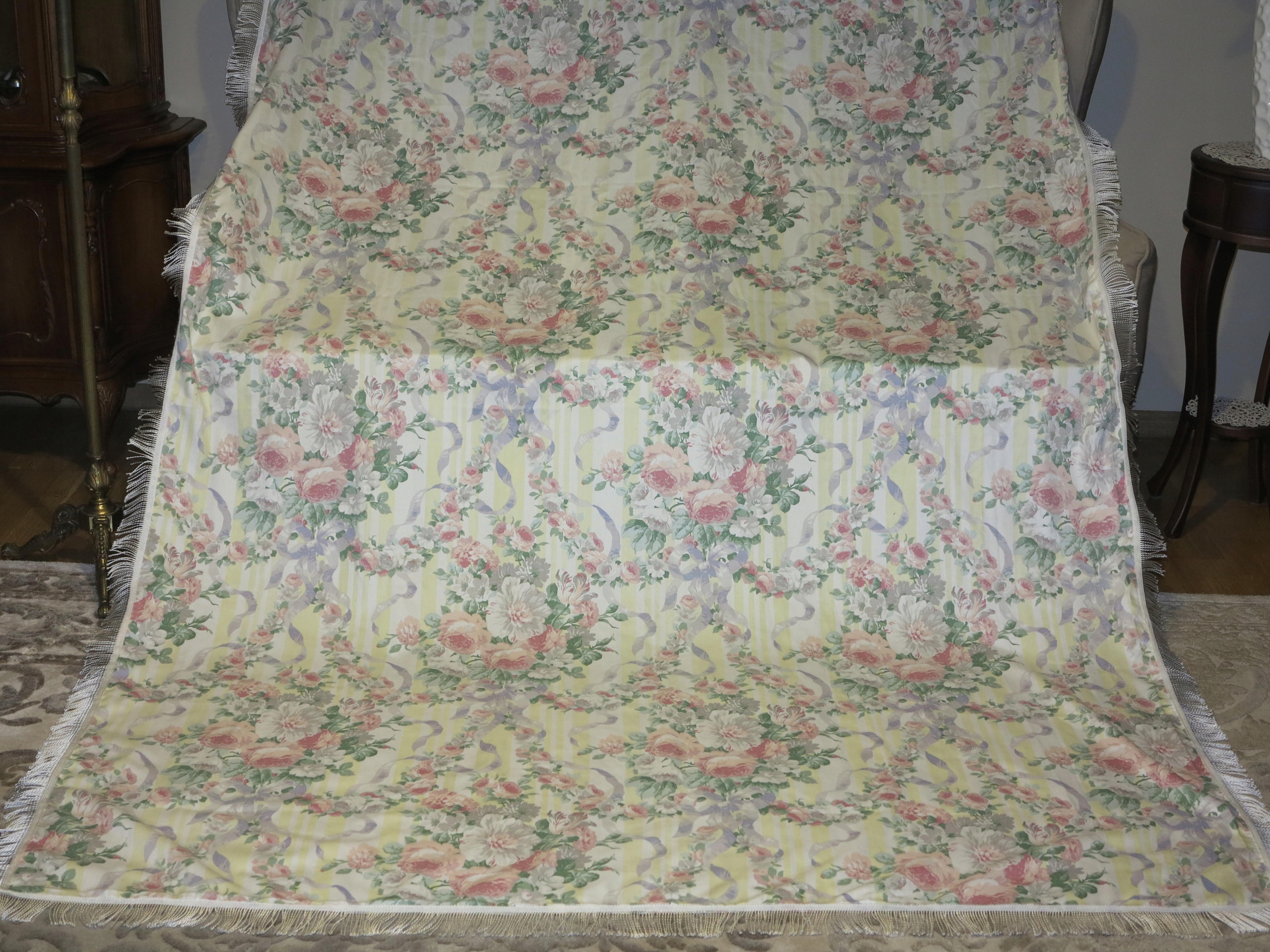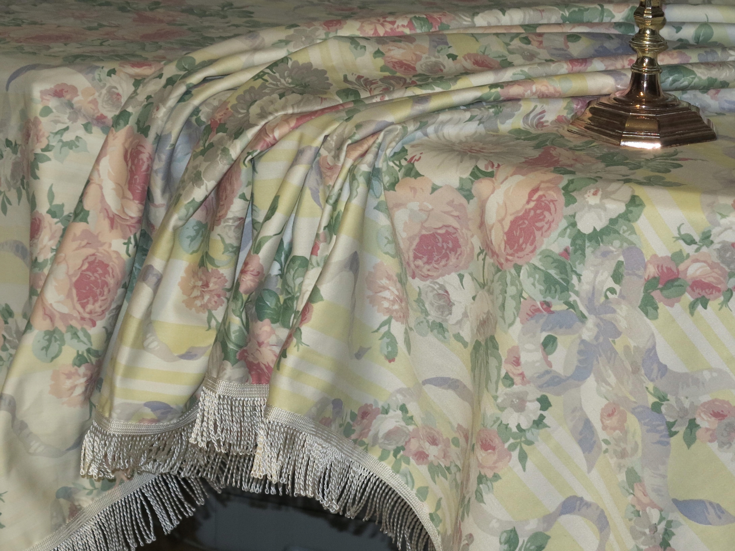 Красивая английская скатерть с красивыми букетами роз, завернутых в лент. О длинных полосах. Классическая английская хлопковая атласная атлас