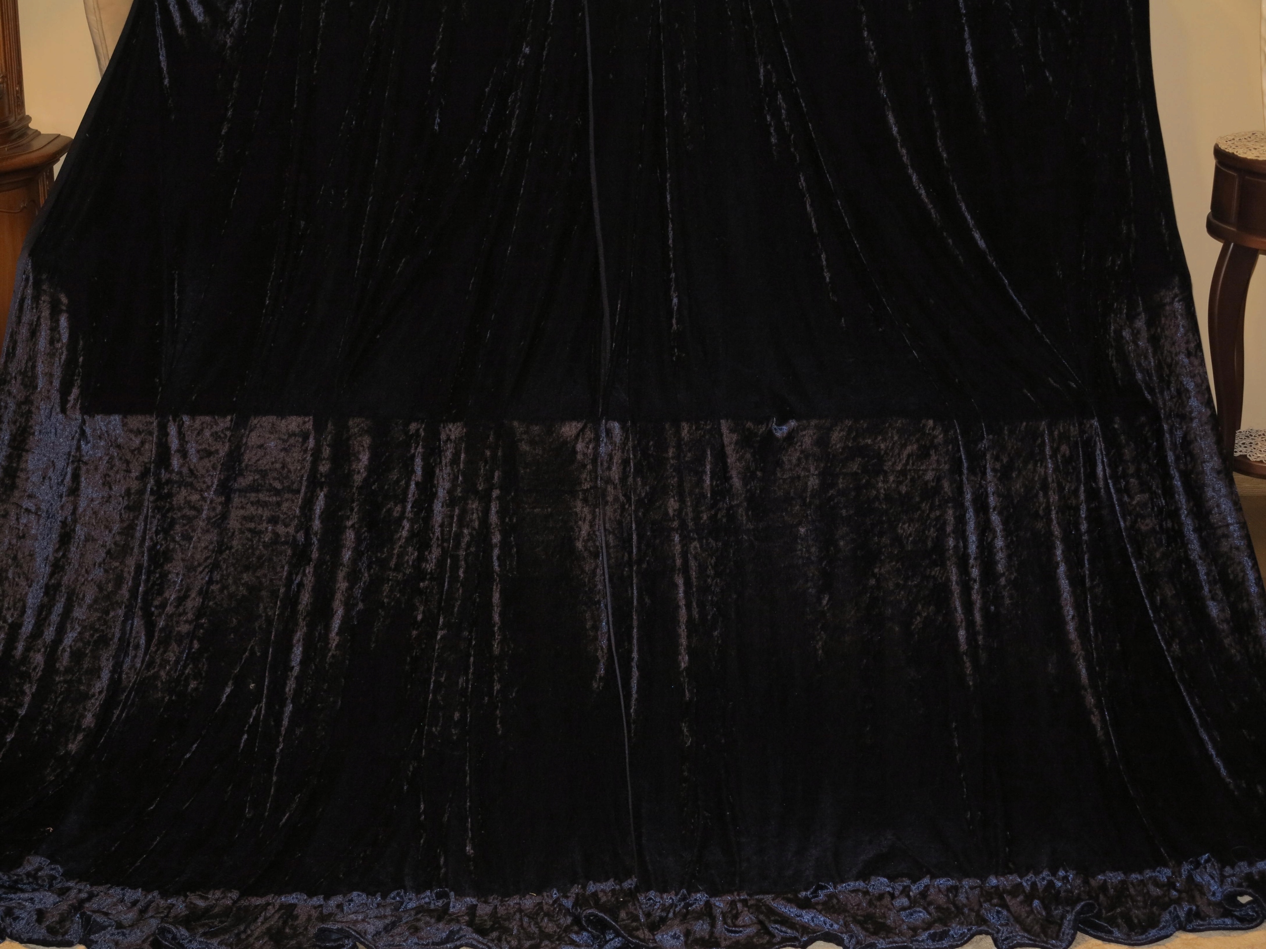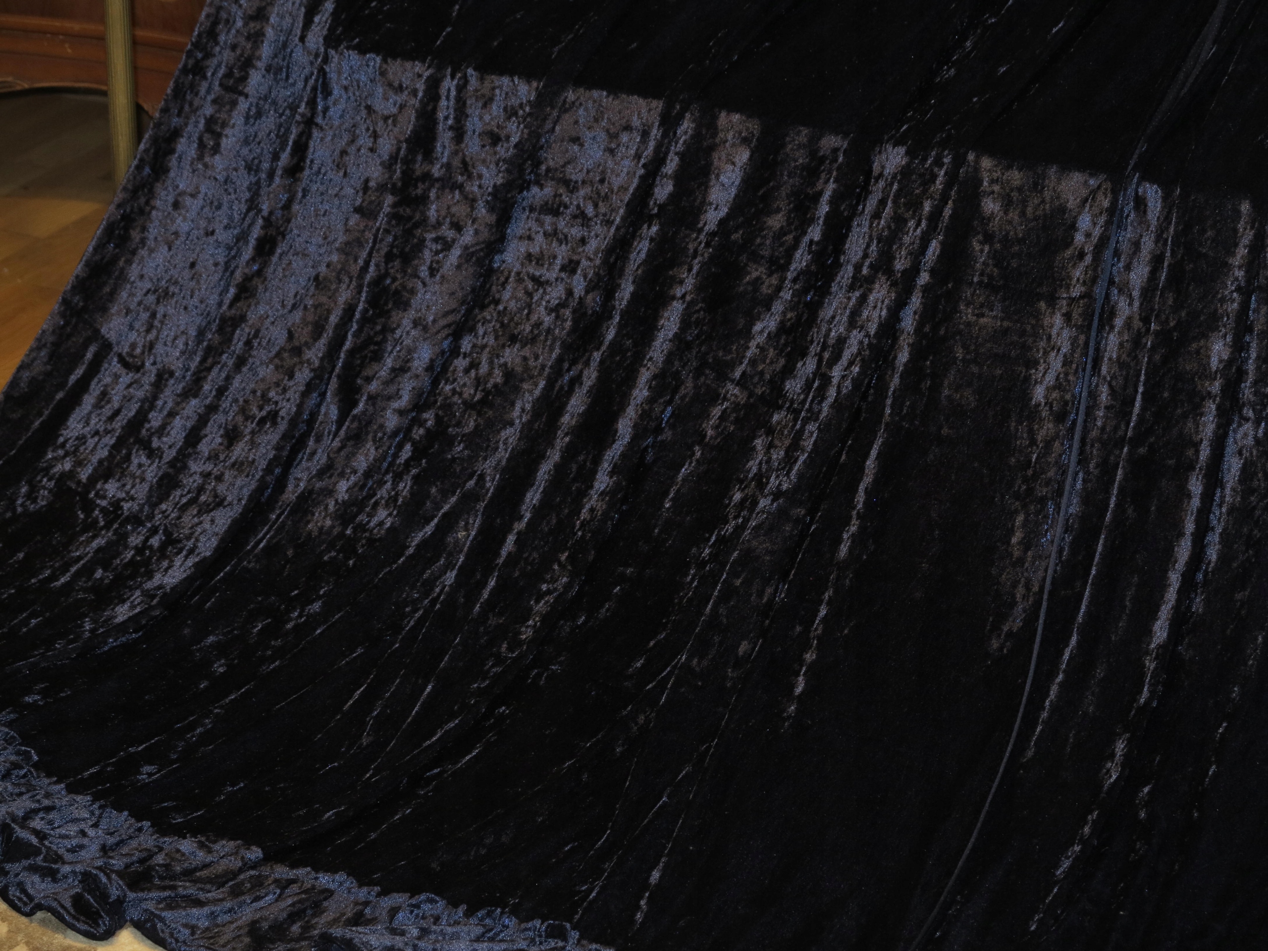КОМПЛЕКТ КРАСИВЫХ ШТОР ИЗ струящегося бархата БАРХАТА ТЕМНО-СИНЕГО ЦВЕТА (НА ФОТОГРАФИЯХ ЦВЕТ НЕМНОГО ТЕМНЕВЫЙ, В РЕАЛЬНОСТИ КРАСИВЫЙ ТЕМНО-СИНИЙ)