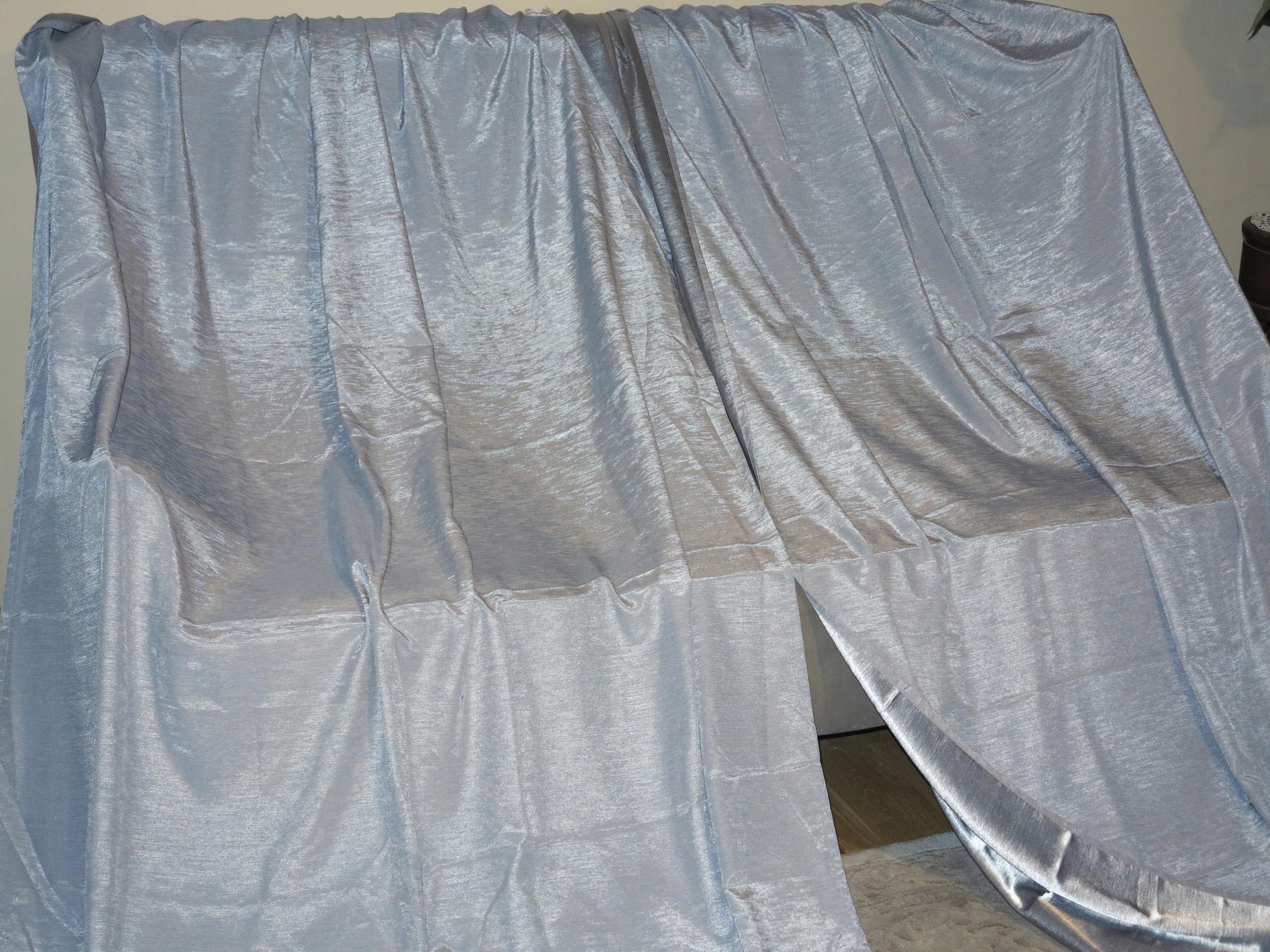 КРАСИВЫЕ струящиеся ШТОРЫ В ОДНОМ СЕРЕБРИСТОМ ПЕПЕЛЬНОМ ЦВЕТЕ. МАТОВЫЙ ВЕРХ, АТЛАСНЫЙ ГЛЯНЦЕВЫЙ НИЗ