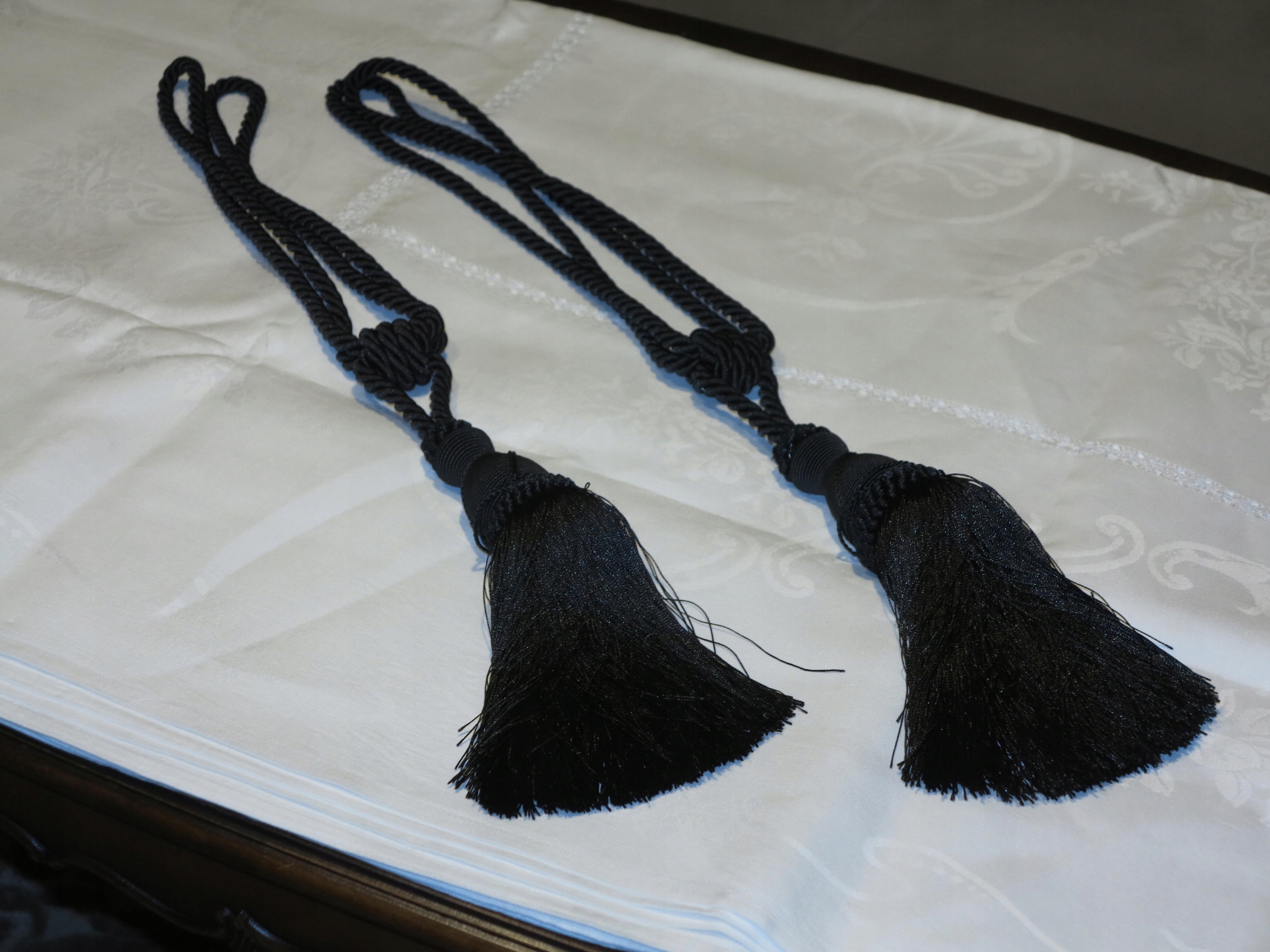 НАБОР КРАСИВЫХ, БОЛЬШИХ ЧЕРНЫХ СТРУНОК С ВИСЯЧИМИ КИСТОЧКАМИ И СТРУЯЩИМИСЯ ПАЛЬЦАМИ. ИДЕАЛЬНО ПОДОЙДЕТ ДЛЯ СТИЛЬНЫХ ШТОР