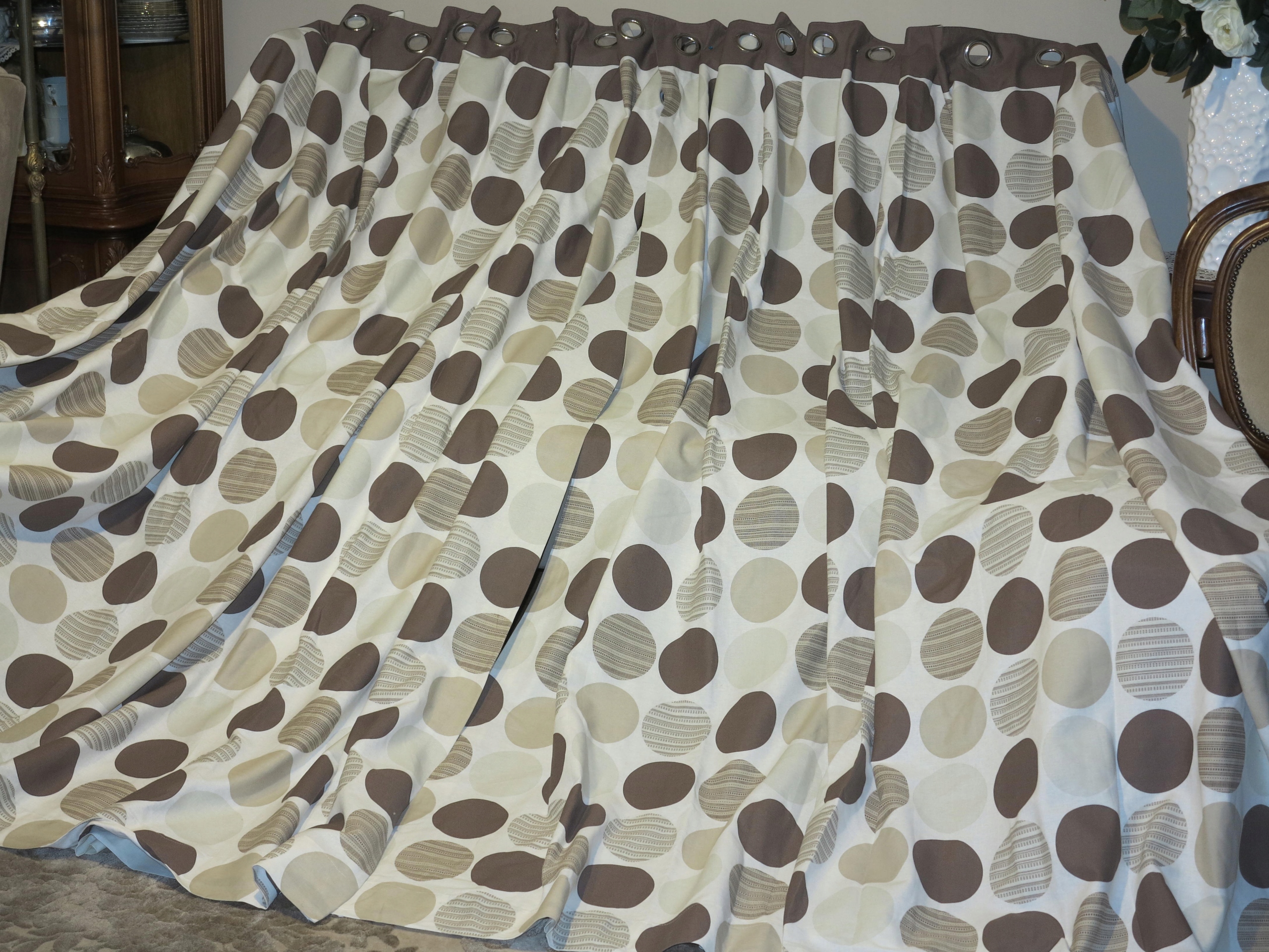 набор красивых огромных и очень твердых занавесков с застрявшими в металлических втулках. Цвета кремового белого и оттенки бежевого и коричневого
