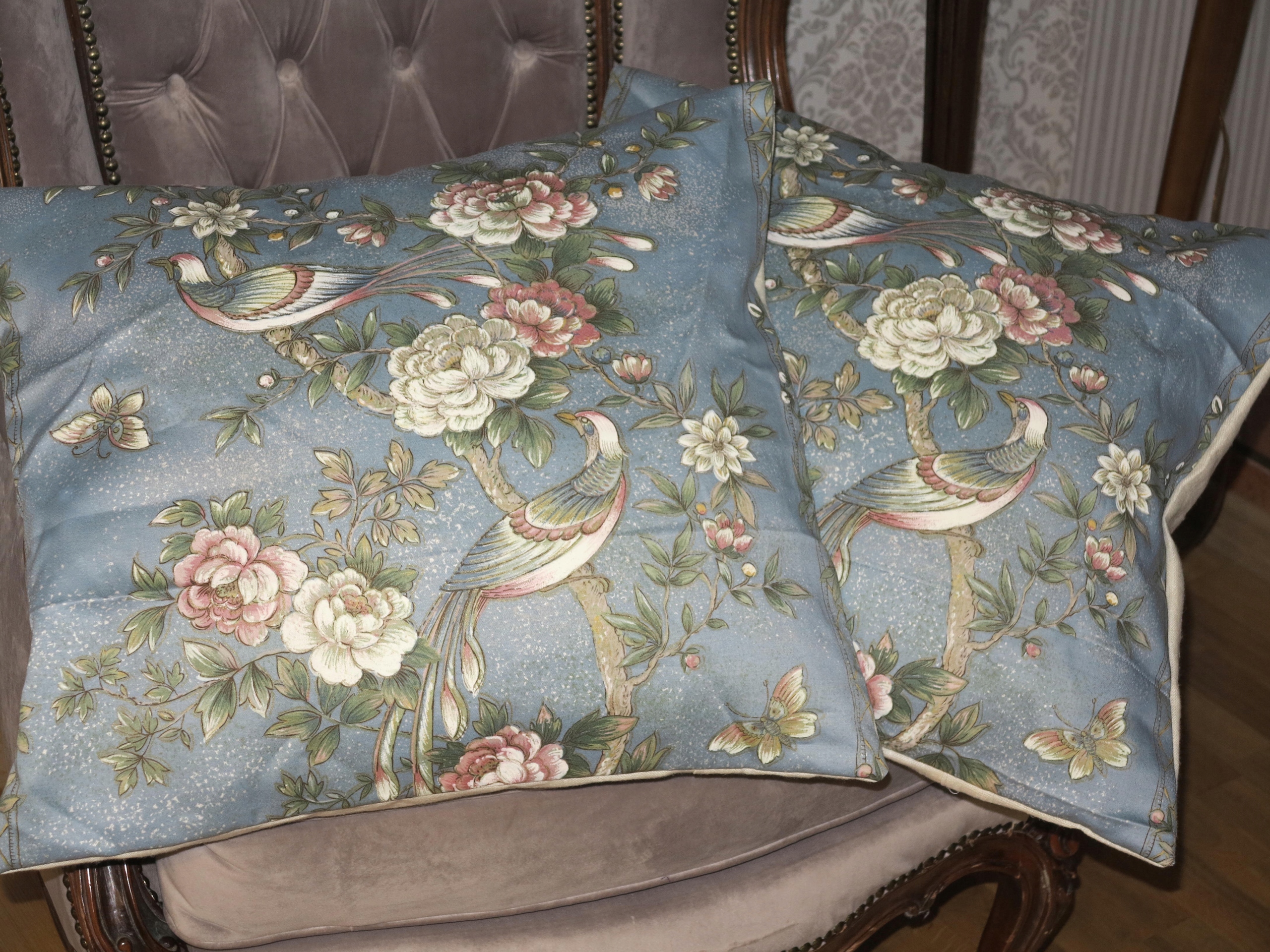 ЧУДОВІ ВЕЛИКІ БЛАКИТНІ НАВОЛОЧКИ РАЙСЬКІ ПТАХИ, БАВОВНА САТИН/ЛЬОН 53/48 № 2