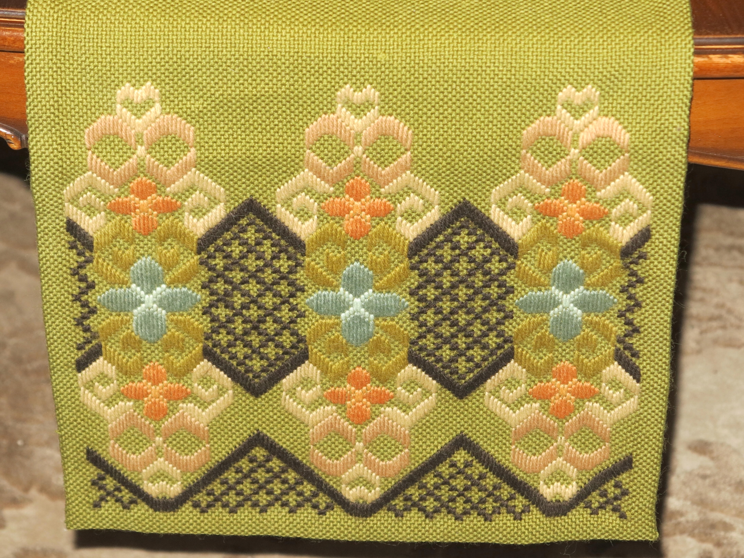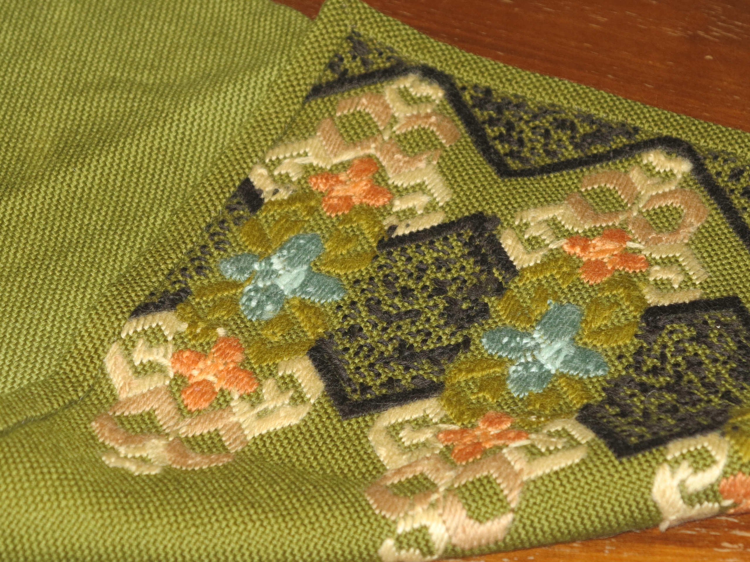Красивый, народный сервис для комода с богатой вышивкой шерстяной вышивки. Цвет травянистой зелени