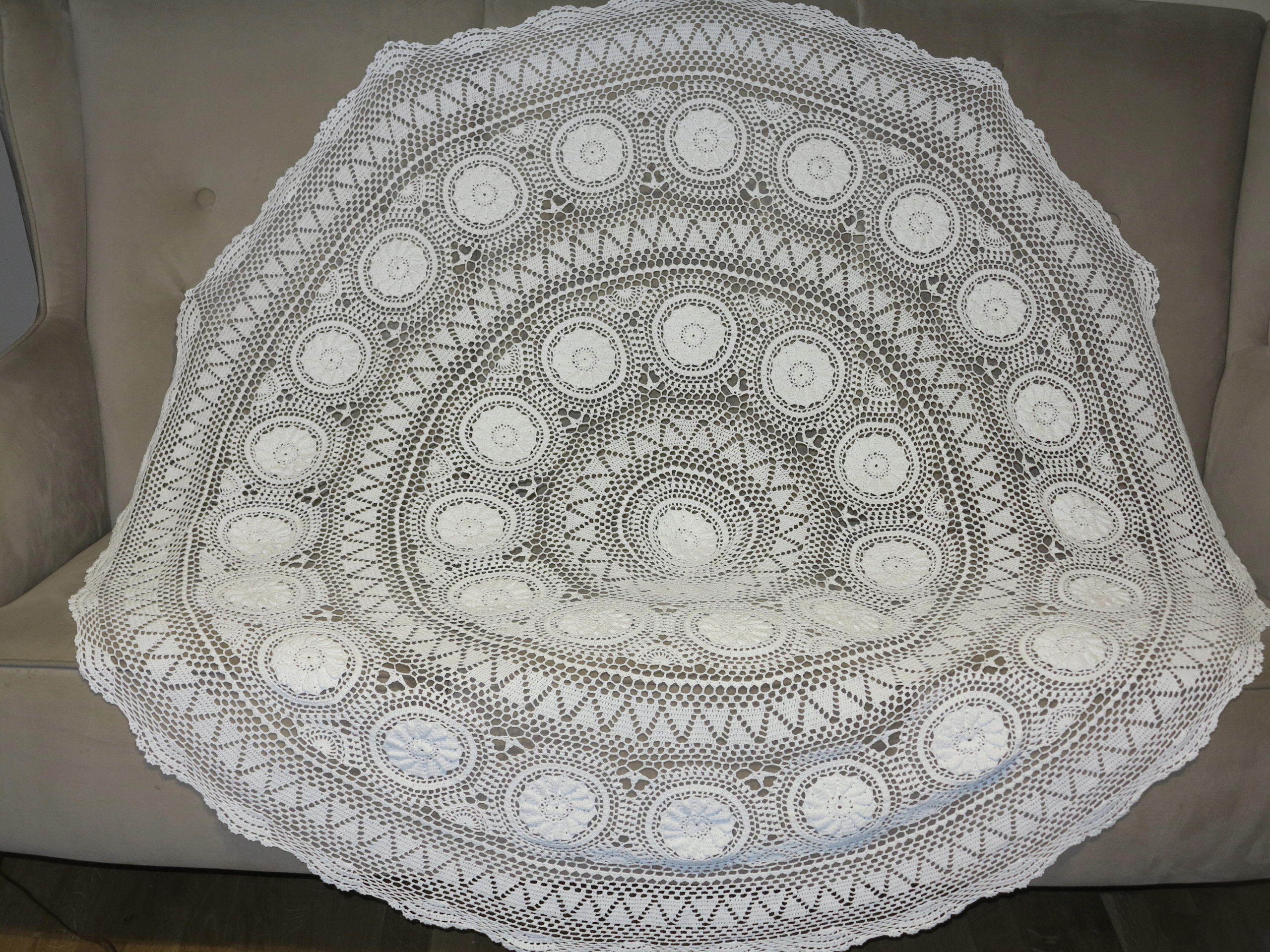 Замечательный билевсиньки большая твердая круглая скатерть, вязаная рука, вязаная рука. Круглый рисунок розетки - выпуклость