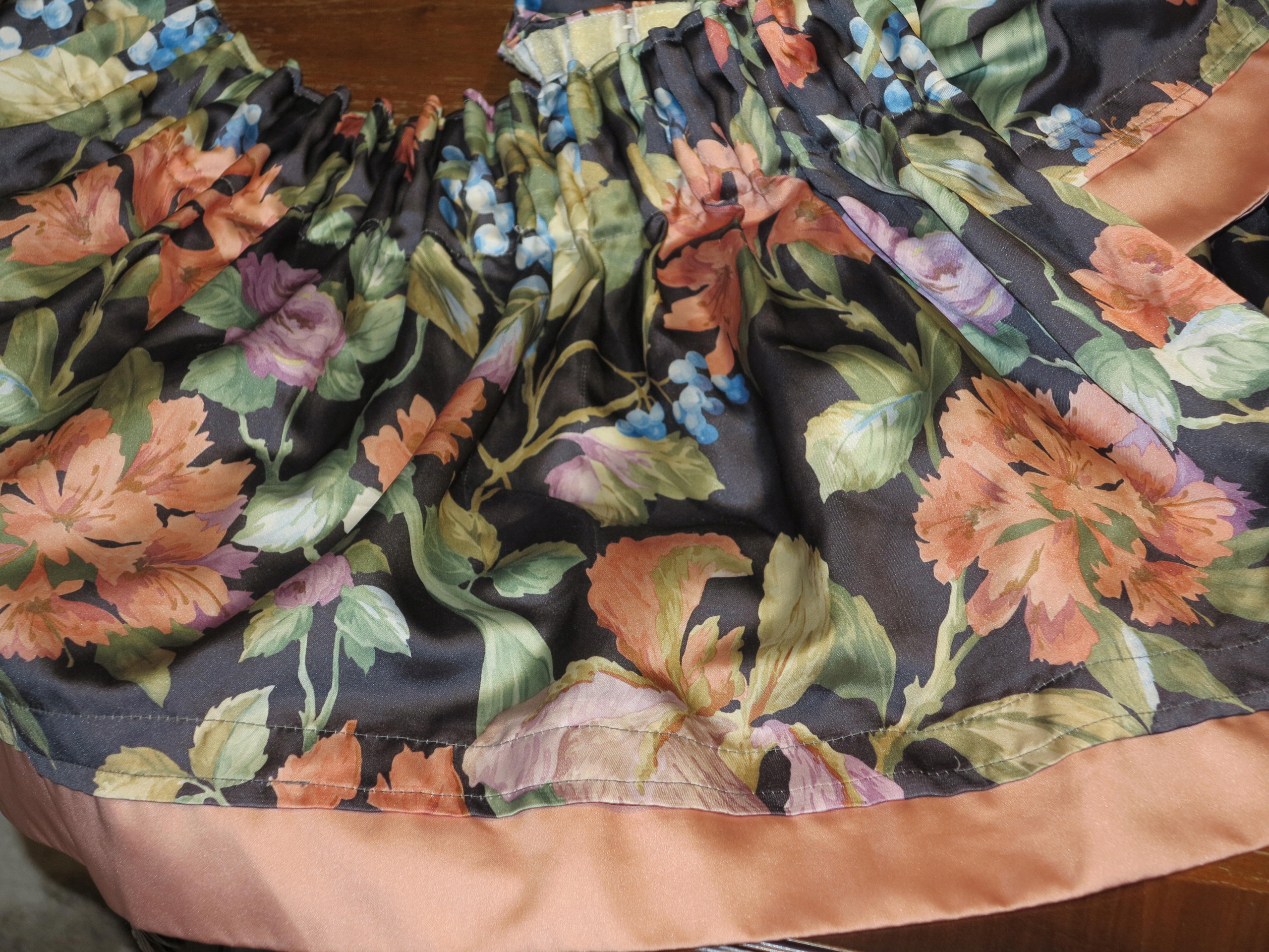 ОЧЕНЬ КРАСИВЫЙ АНГЛИЙСКИЙ ЛАМБРЕКЕН ИЗ МАТОВОГО АТЛАСА, С ЦВЕТАМИ ИРИСАМИ, РОЗАМИ И ВИНОГРАДОМ.