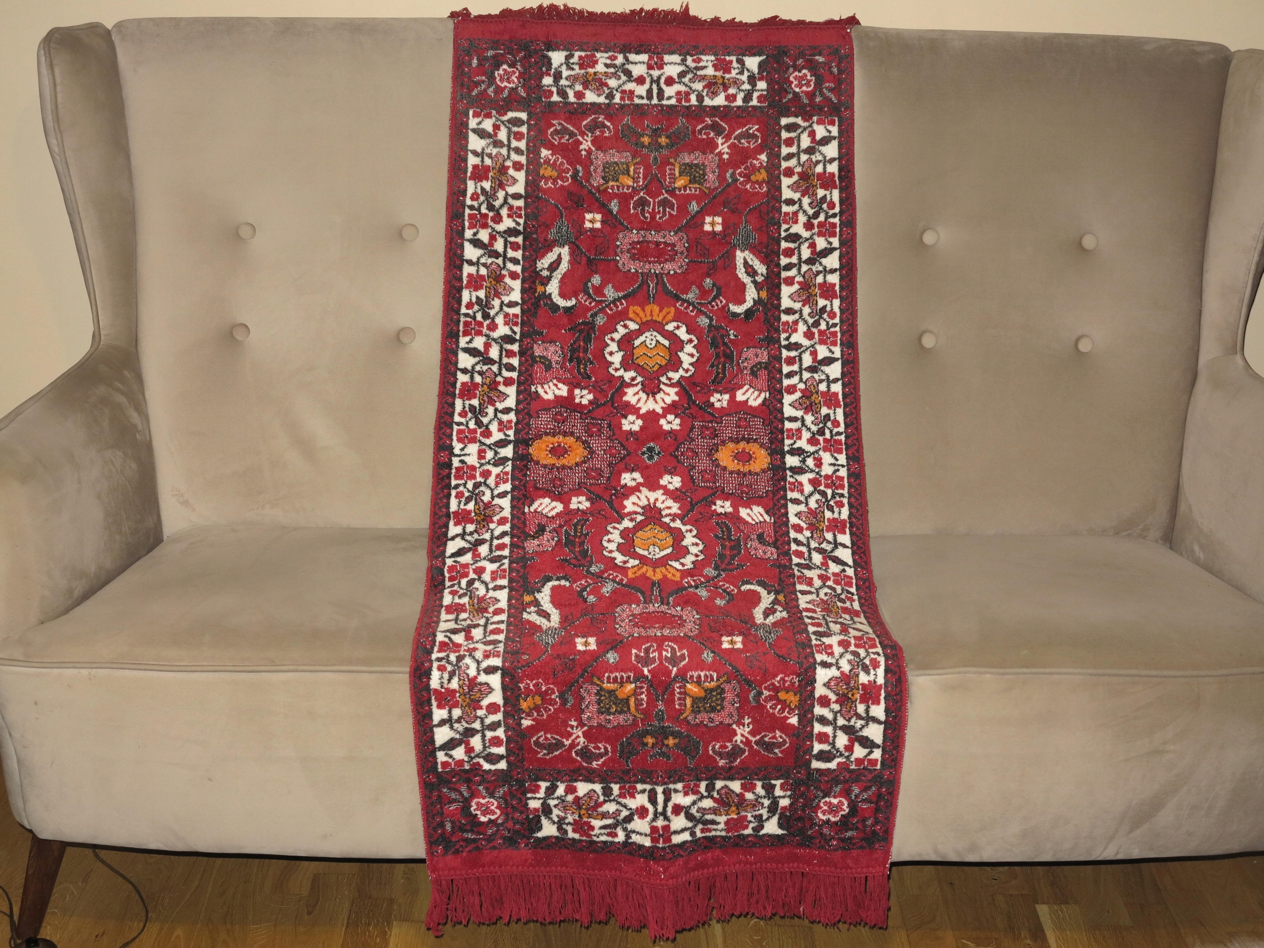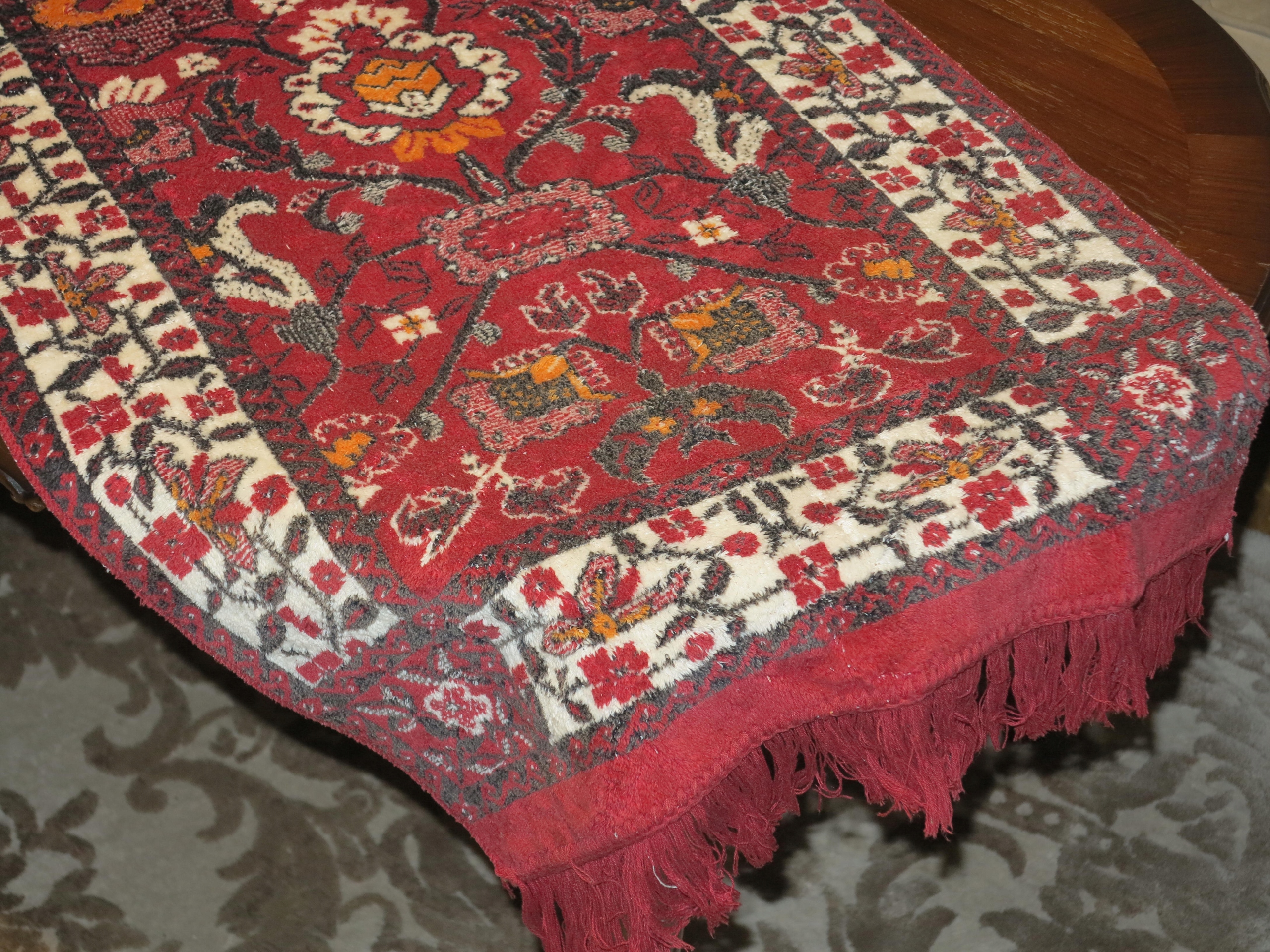 Предмет аукциона - старинная, стильная настольная дорожка или килим из хлопкового бархата, с бахромой по 8 см с обеих сторон. Б/у, в очень хорошем состоянии и качестве, несмотря на возраст. Это продлится много лет. Рекомендую
