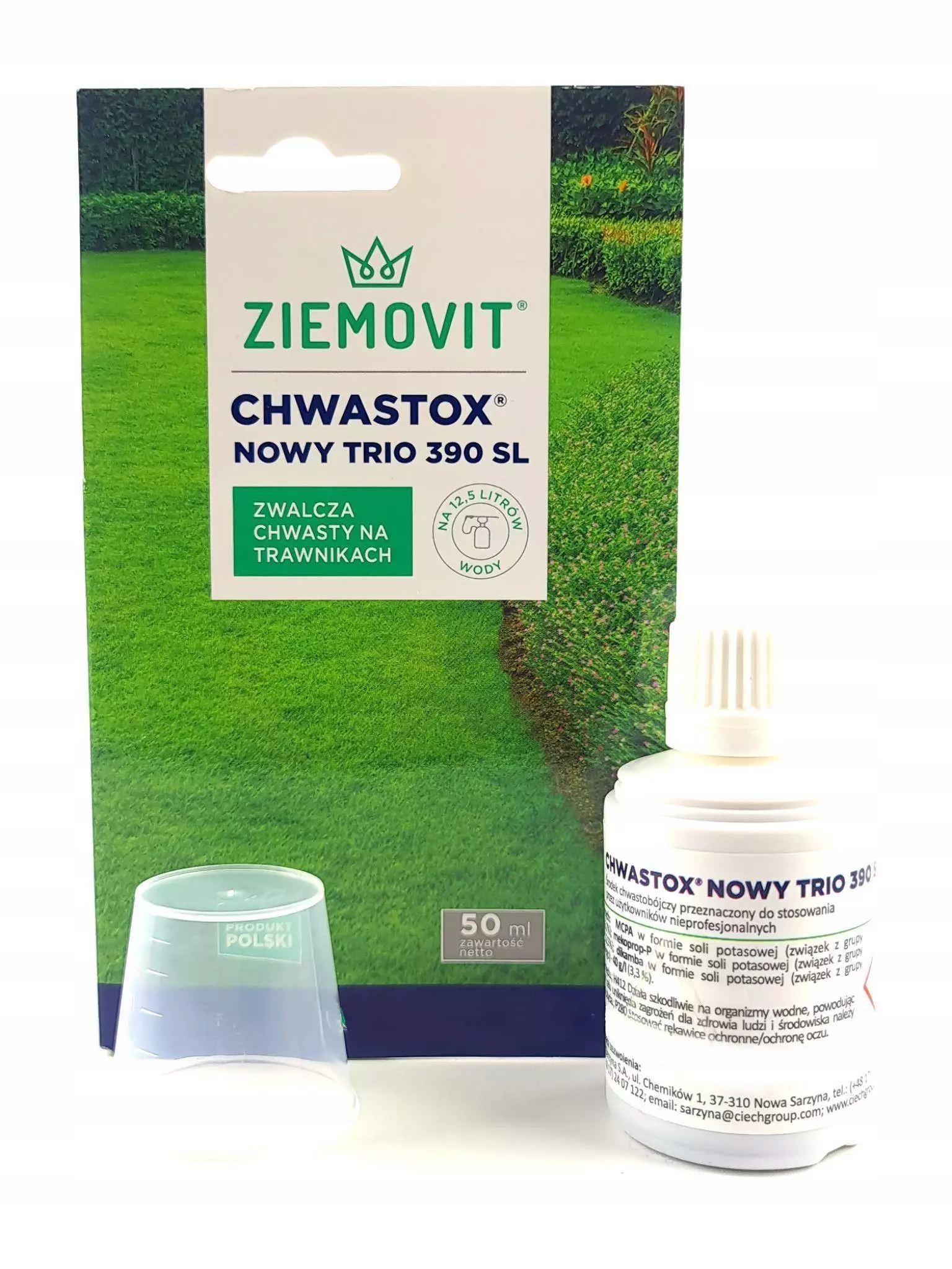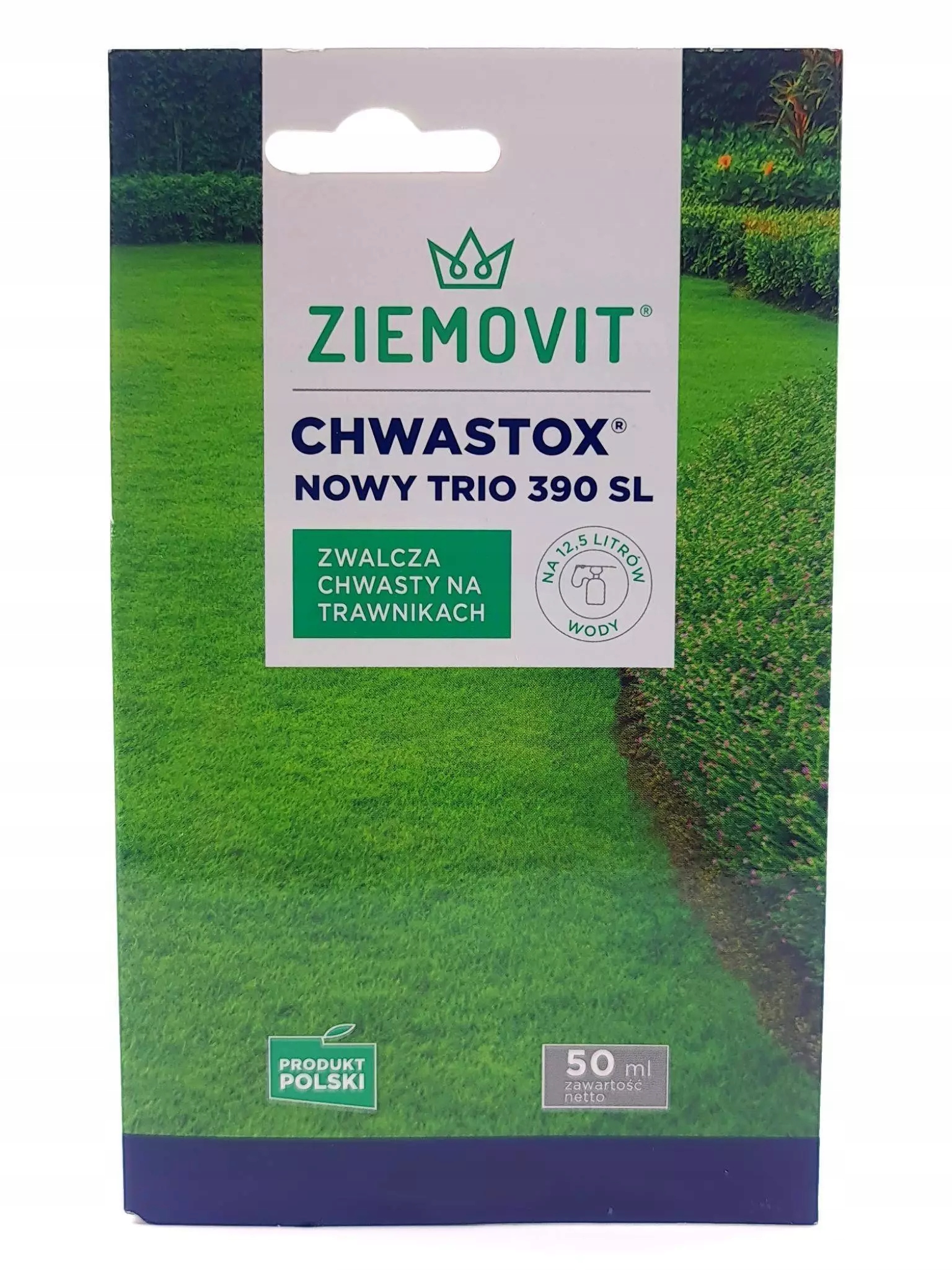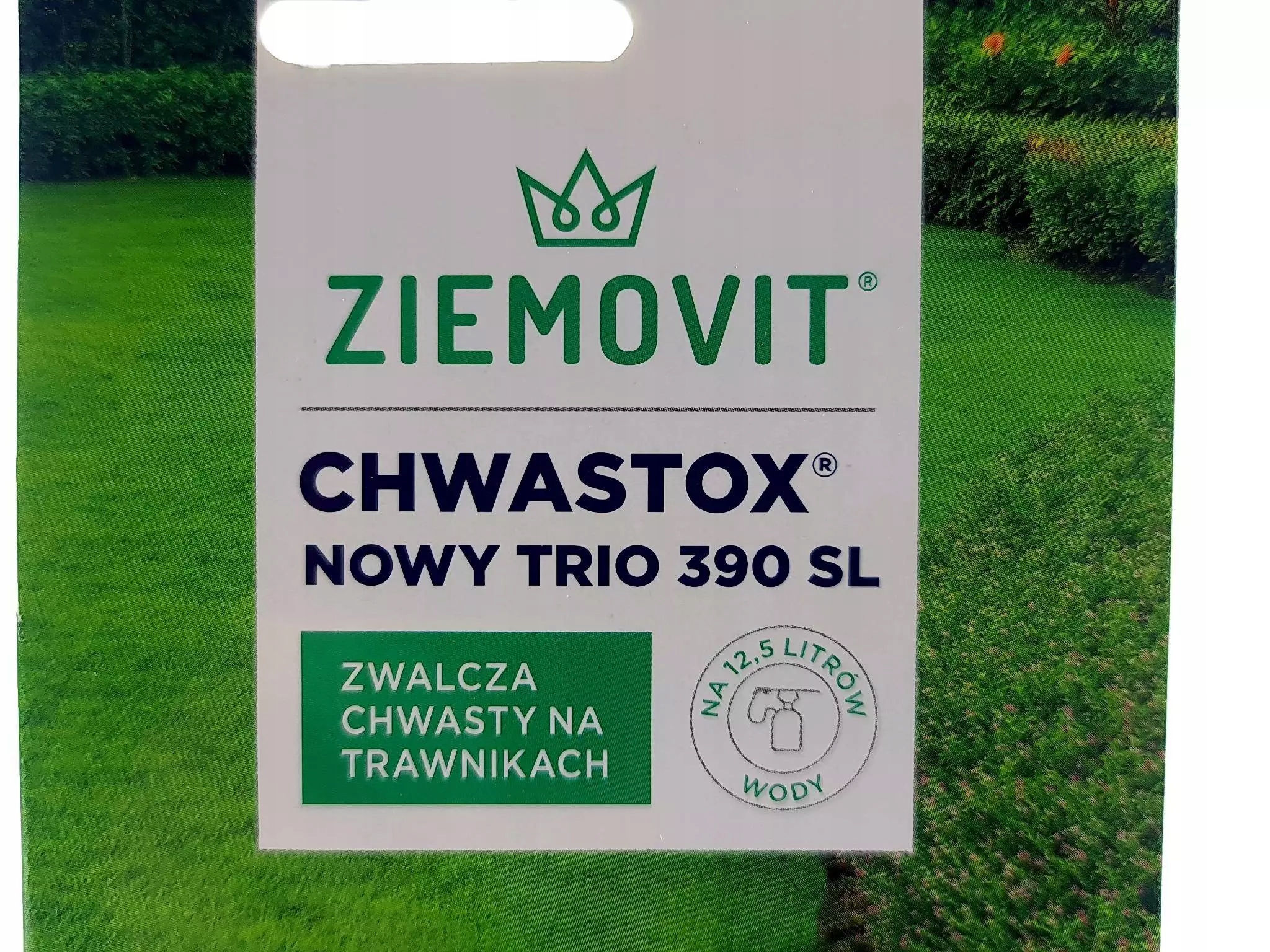 Chwastox Nowy Trio 390 SL — гербицид избирательного действия системного действия, применяется по листьям в виде жидкости для приготовления водного раствора. Борется с наиболее распространенными сорняками на газонах, например, подорожником, одуванчиком обыкновенным.