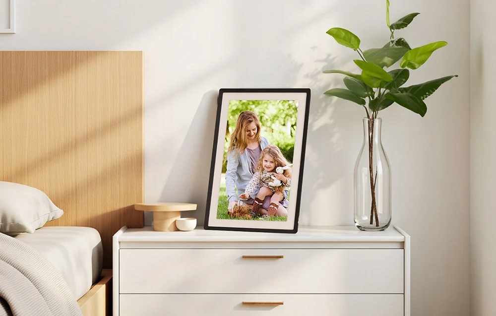 Кадра автоматически поворачивает фотографии, отображая их вертикально или горизонтально в зависимости от ориентации. Кроме того, он предлагает часы, прогноз погоды и спящий режим, который может быть адаптирован к вашим собственным предпочтениям. Магнитная подставка обеспечивает стабильную позицию на столешнице, а встроенная ручка позволяет установить на стену.