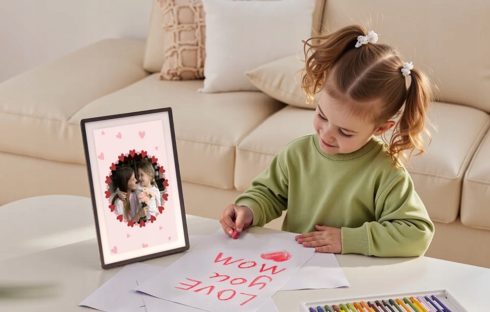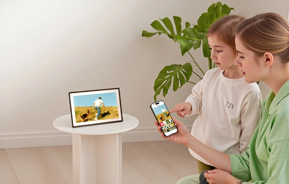 Устройство позволяет немедленно ответить на полученные фотографии - просто коснитесь экрана и отправьте смайлики, такие как сердце или улыбка. Функция работает без необходимости войти в социальные сети, что облегчает общение с любимыми. До 512 пользователей могут быть добавлены в один кадр, что позволяет семье и друзьям со всего мира создавать галерею воспоминаний вместе.
