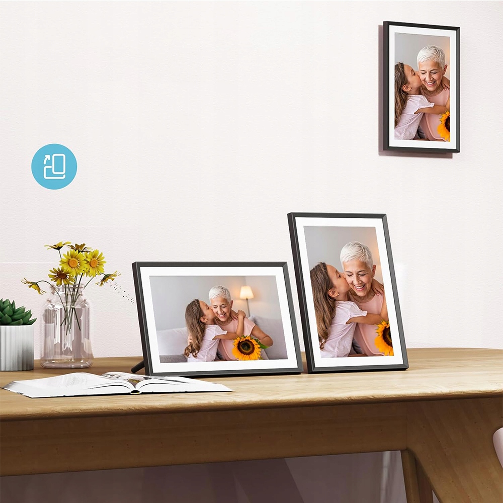 Автоматическое вращение: цифровая фоторамка имеет функцию автоматического вращения, которая автоматически поворачивает фотографии и адаптирует ориентацию в соответствии с двумя. Вы можете установить цифровую раму для фотографий Wi -Fi в вертикальном или горизонтальном режиме, и он автоматически повернет фотографии, чтобы они идеально соответствовали раме. Независимо от того, являются ли они старше или детьми, это очень удобно в использовании!