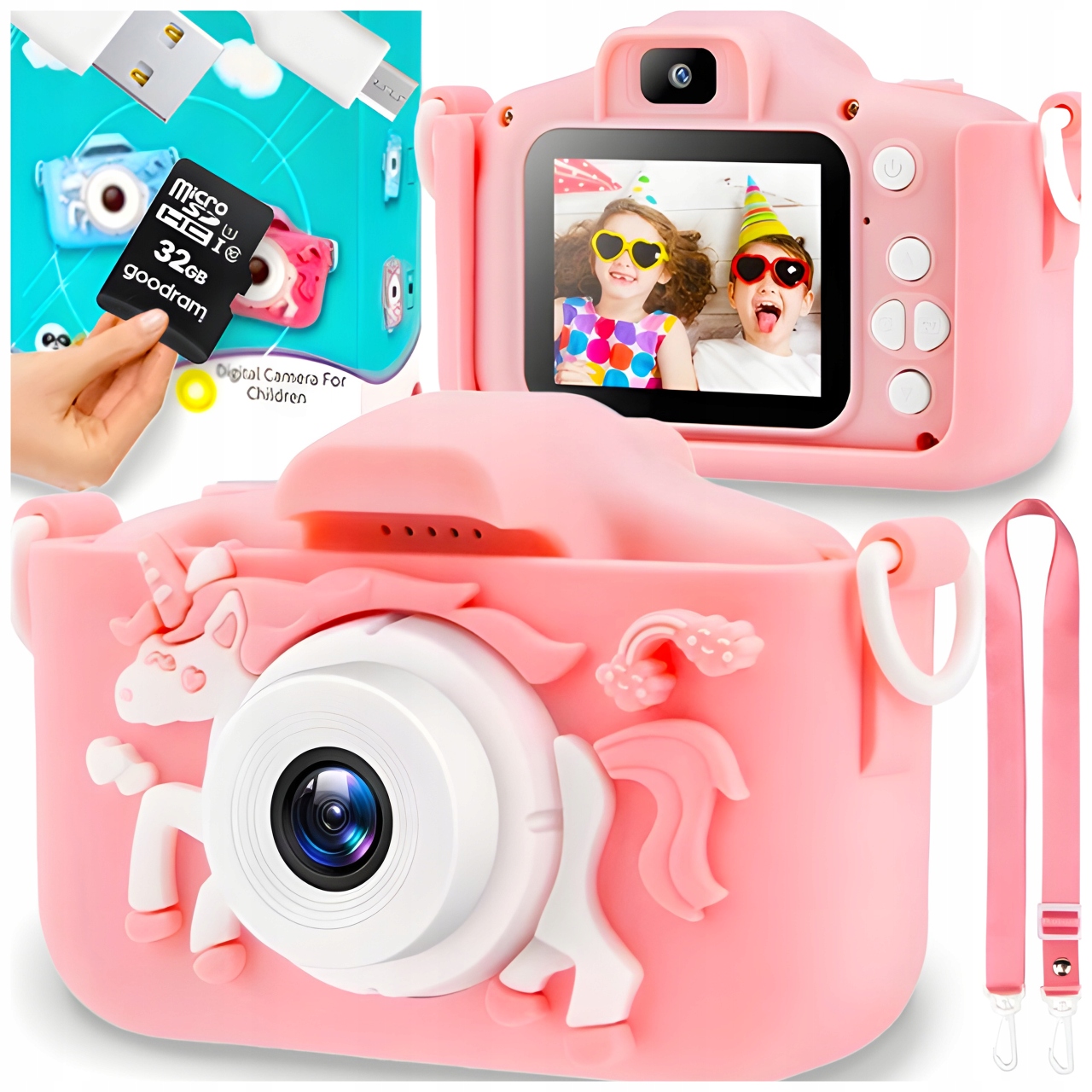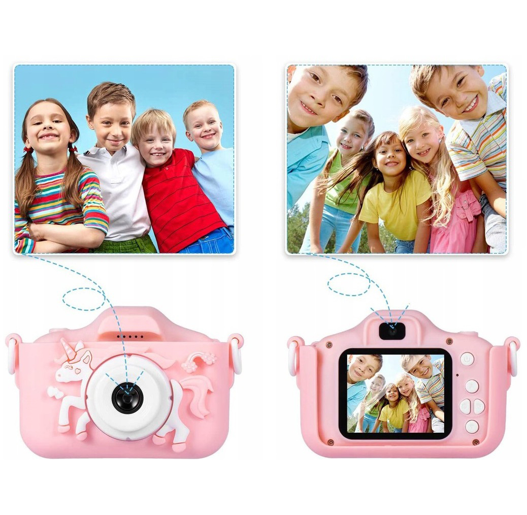 📷📷 Цифровая HD -камера для детей с падающим корпусом: мы тщательно спроектировали силиконовый корпус с красивым узором единорога, он маленький и легкий с очень прочной петлей. Мальчики и девочки могут легко повесить ее на шею и взять ее повсюду. Вам не нужно беспокоиться о том, что камера упадет или заблудится.