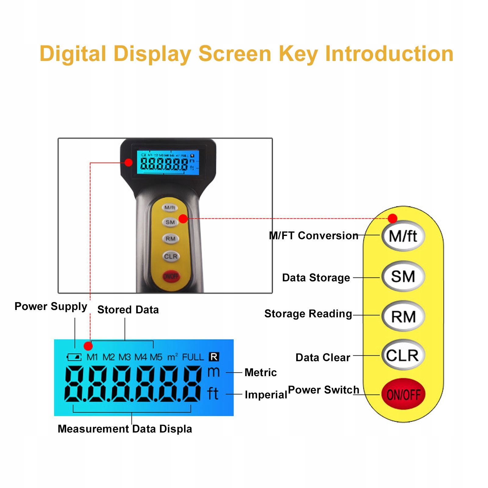 5. [Цифровой дисплей] На этом расстоянии измерения есть четкий цифровой дисплей, с 2 встроенными аккумуляторами AAA, каждый по 300 мАч, обеспечивающий использование Duwlwae; Оборудован 5 -метровой лентой, ATUE для использования