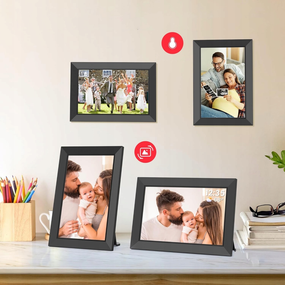 - Цифровая рамка для фотографий Wi -Fi официально авторизована приложением «Frameo», уважаемой службы передачи облаков, известная строгой защитой фотографий своих клиентов. Кроме того, у Frameo есть десятки миллионов пользователей по всему миру. Наша цифровая фотокама имеет встроенную емкостью 32 ГБ. Кроме того, кадр также поддерживает подключение карты Micro SD (не включена в набор ), что дает вам большую гибкость выбора (поддерживает форматы изображений, такие как JPG/JPEG/BMP/PNG и видео форматы, такие как MP4)